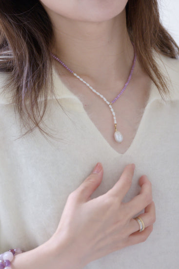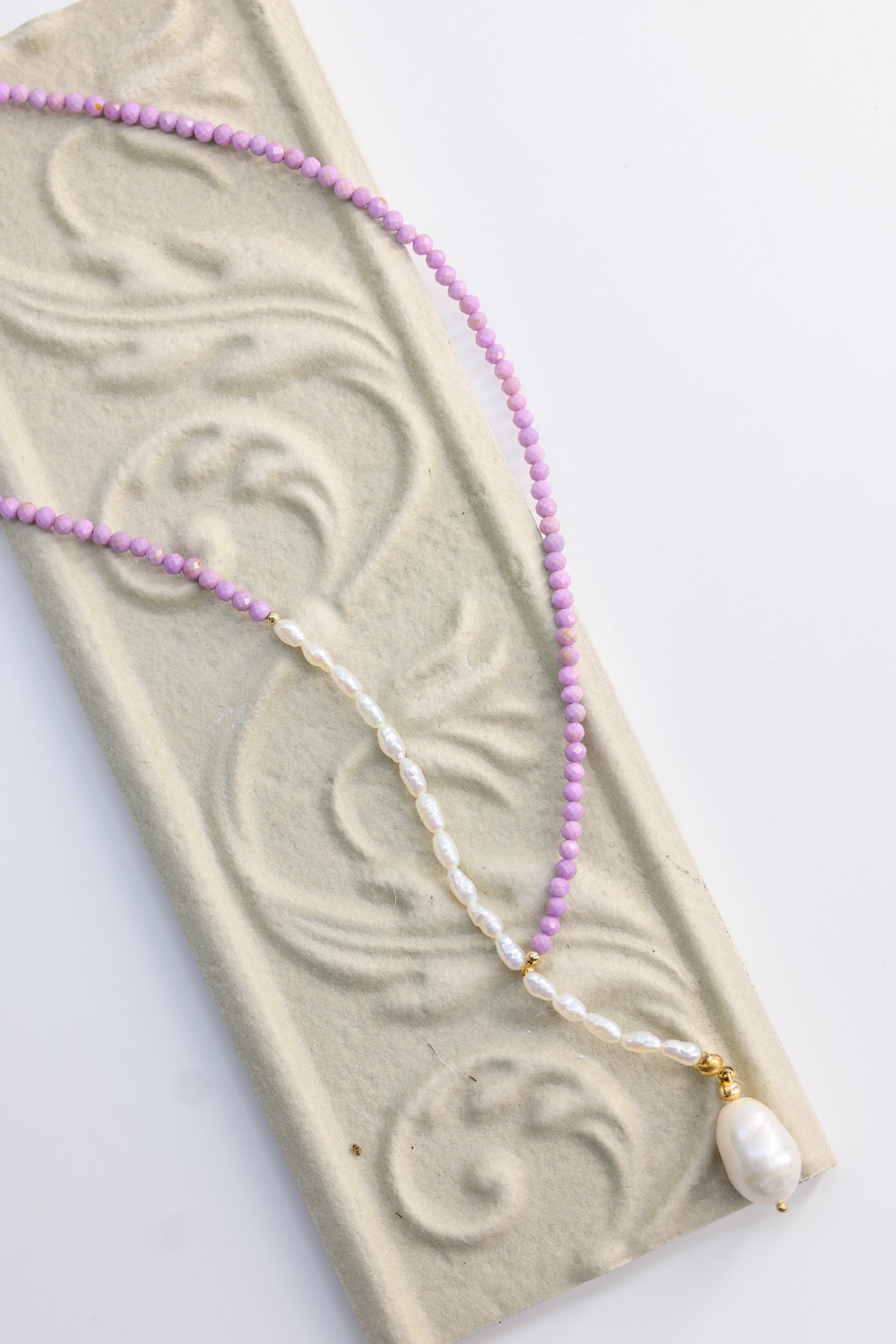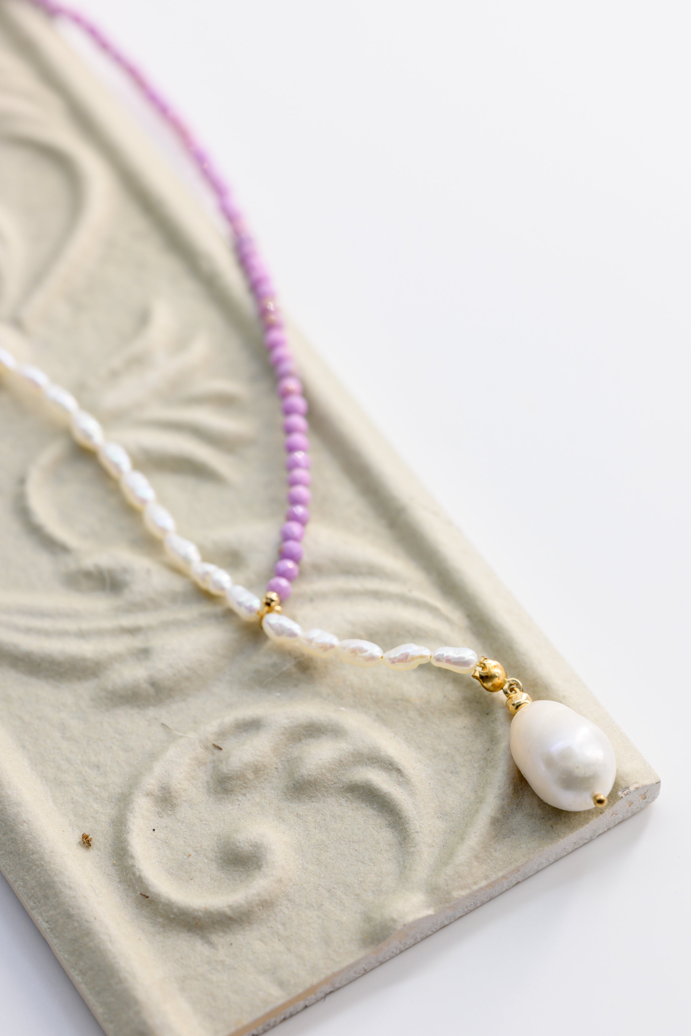 Allium Phosphosiderite Baroque Pearl Drop Necklace