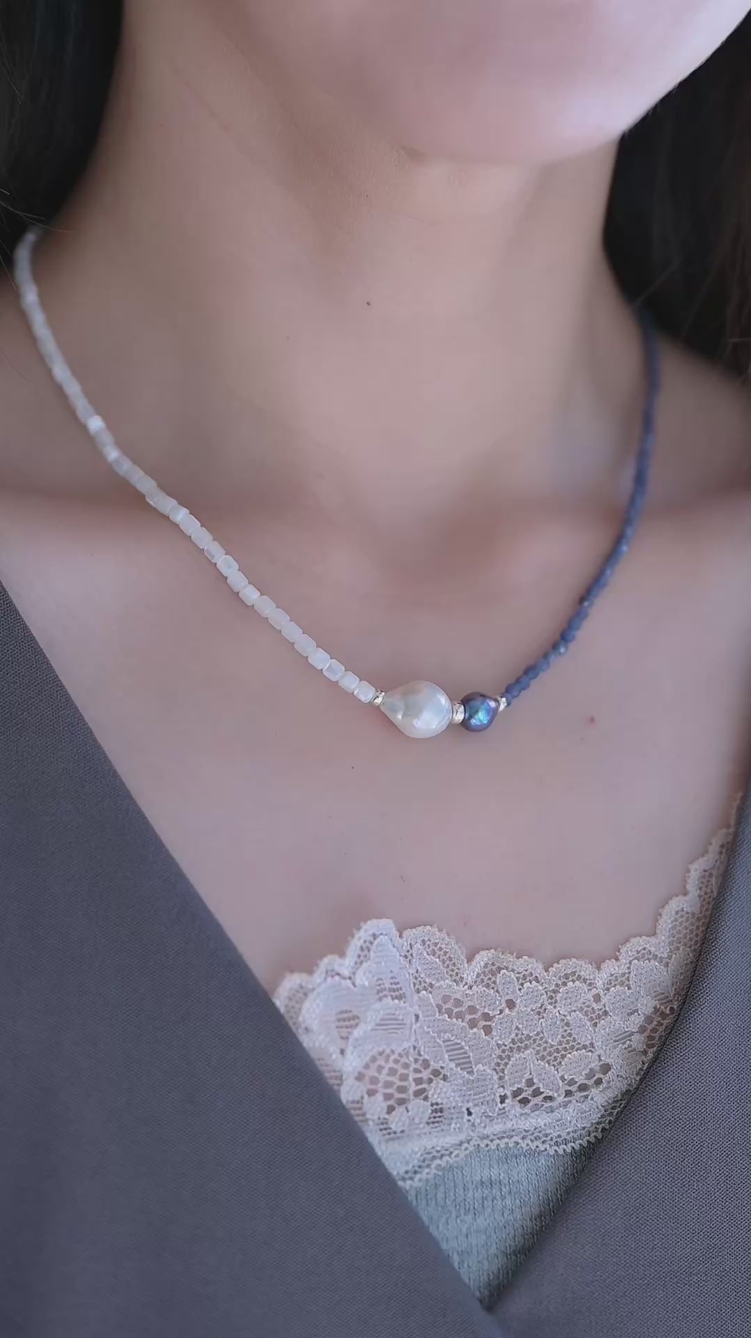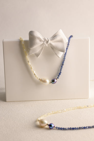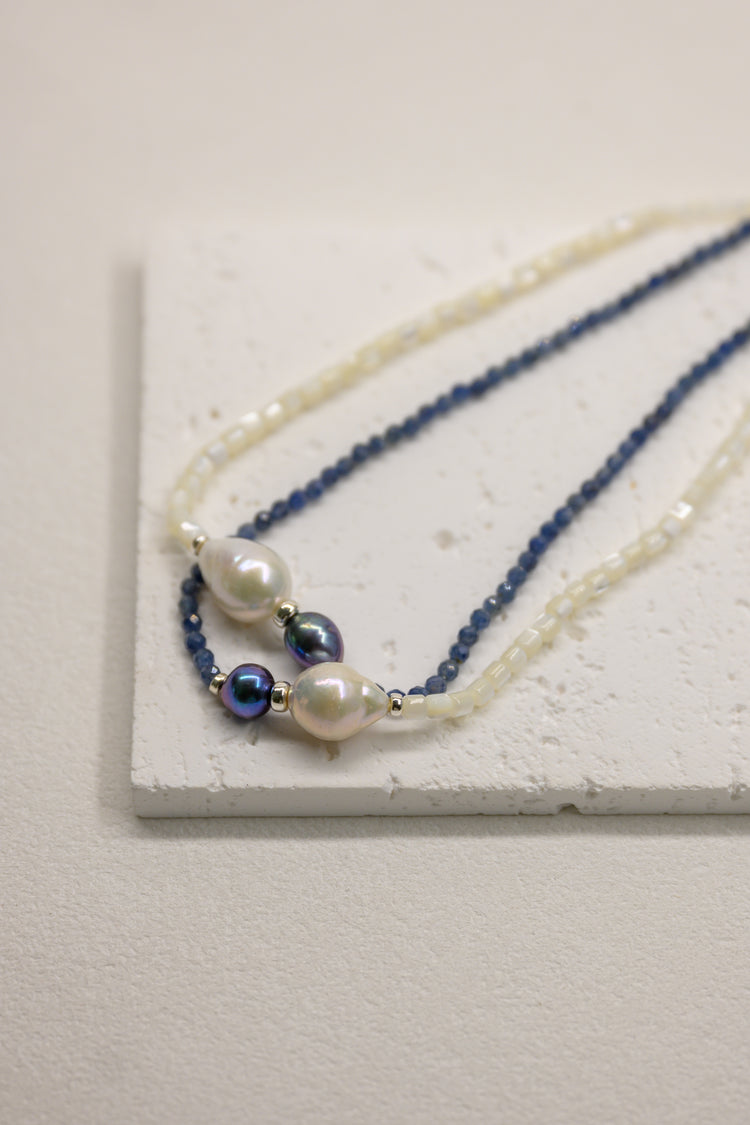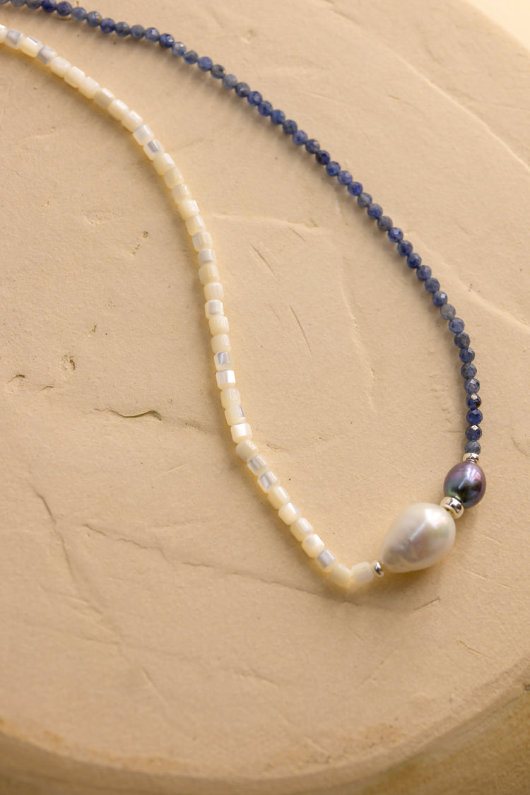 Aqua Mirage Baroque Pearl Drop Necklace | Sapphire (Sri Lanka) (AAA)