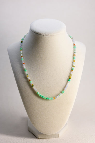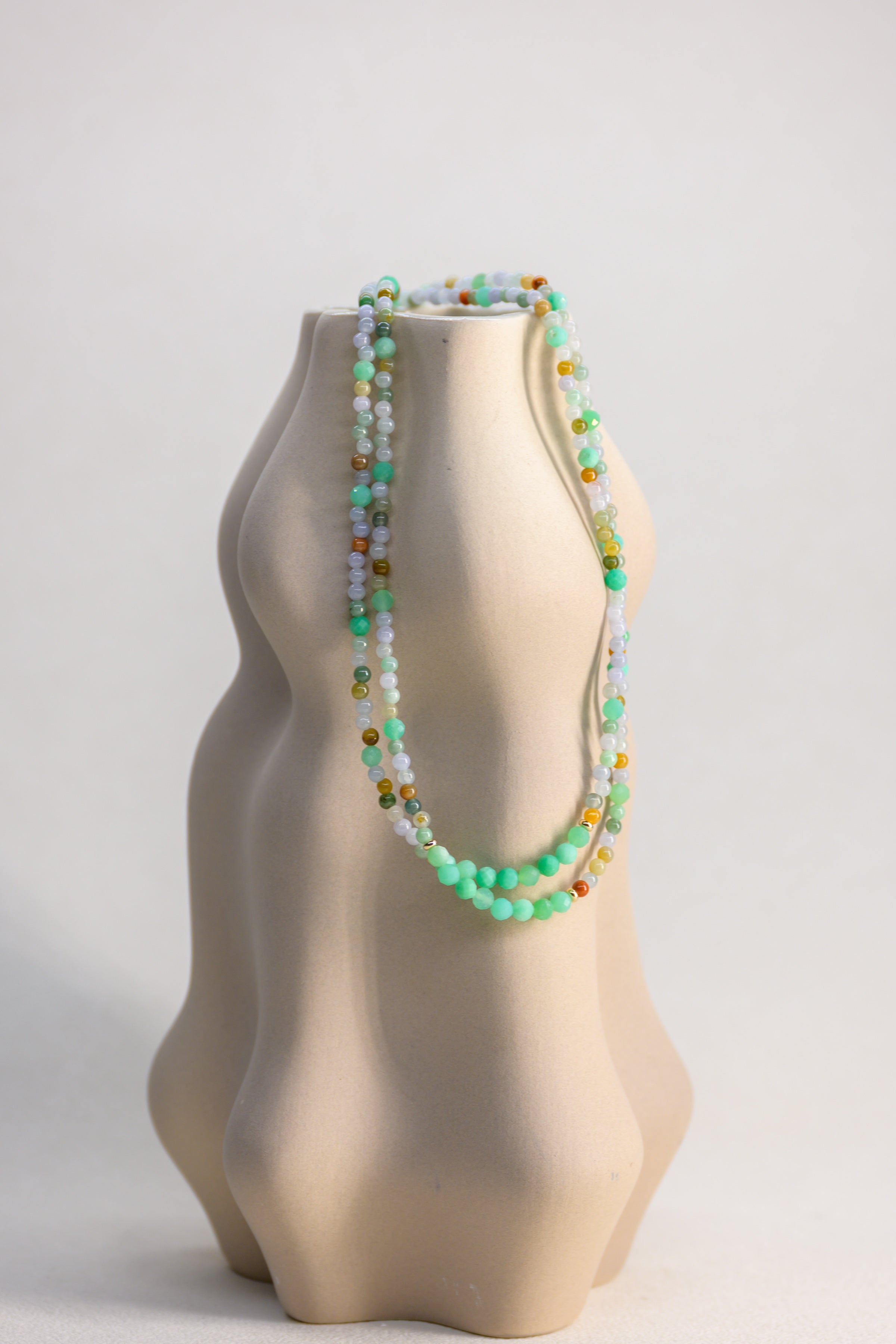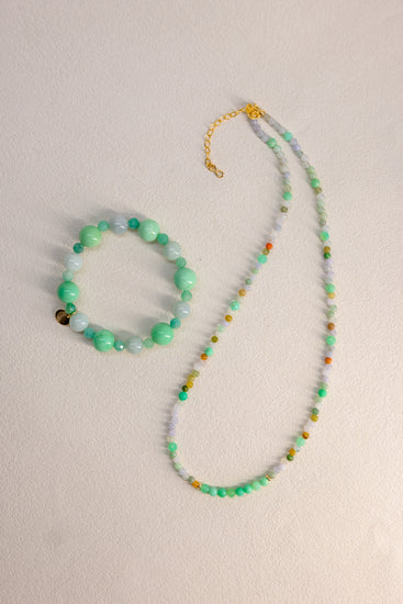 When united, these gemstones embody the balance of sun, moon, and stars — the cycle of light and shadow, life and renewal. Like an eclipse framed in green, the necklace is both grounding and luminous, an amulet of growth, protection, and cosmic beauty.