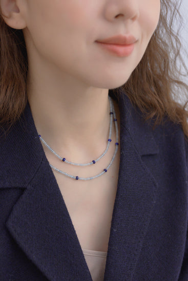 This necklace combines soft aquamarine and rich lapis. Perfect for layering or wearing alone, it easily pairs with other jewelry styles, from casual to elegant. Simple and versatile, it's an easy go-to piece.