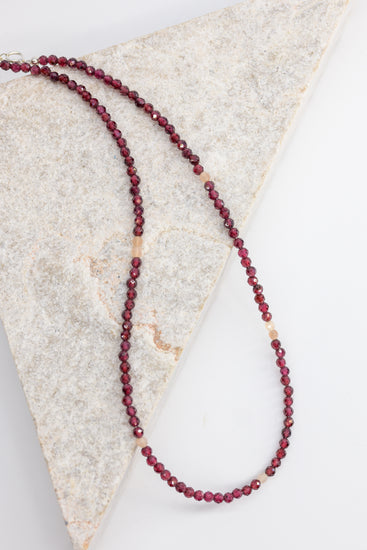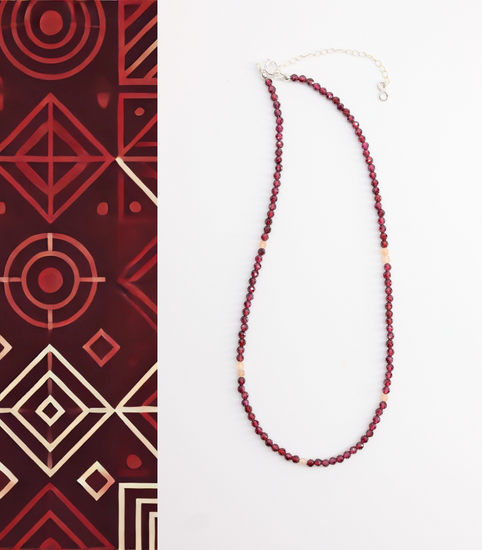 This necklace combines rich garnet and soft peach moonstone. Perfect for layering or wearing alone, it easily pairs with other jewelry styles, from casual to elegant. Simple and versatile, it's an easy go-to piece.