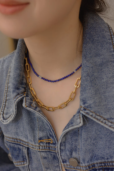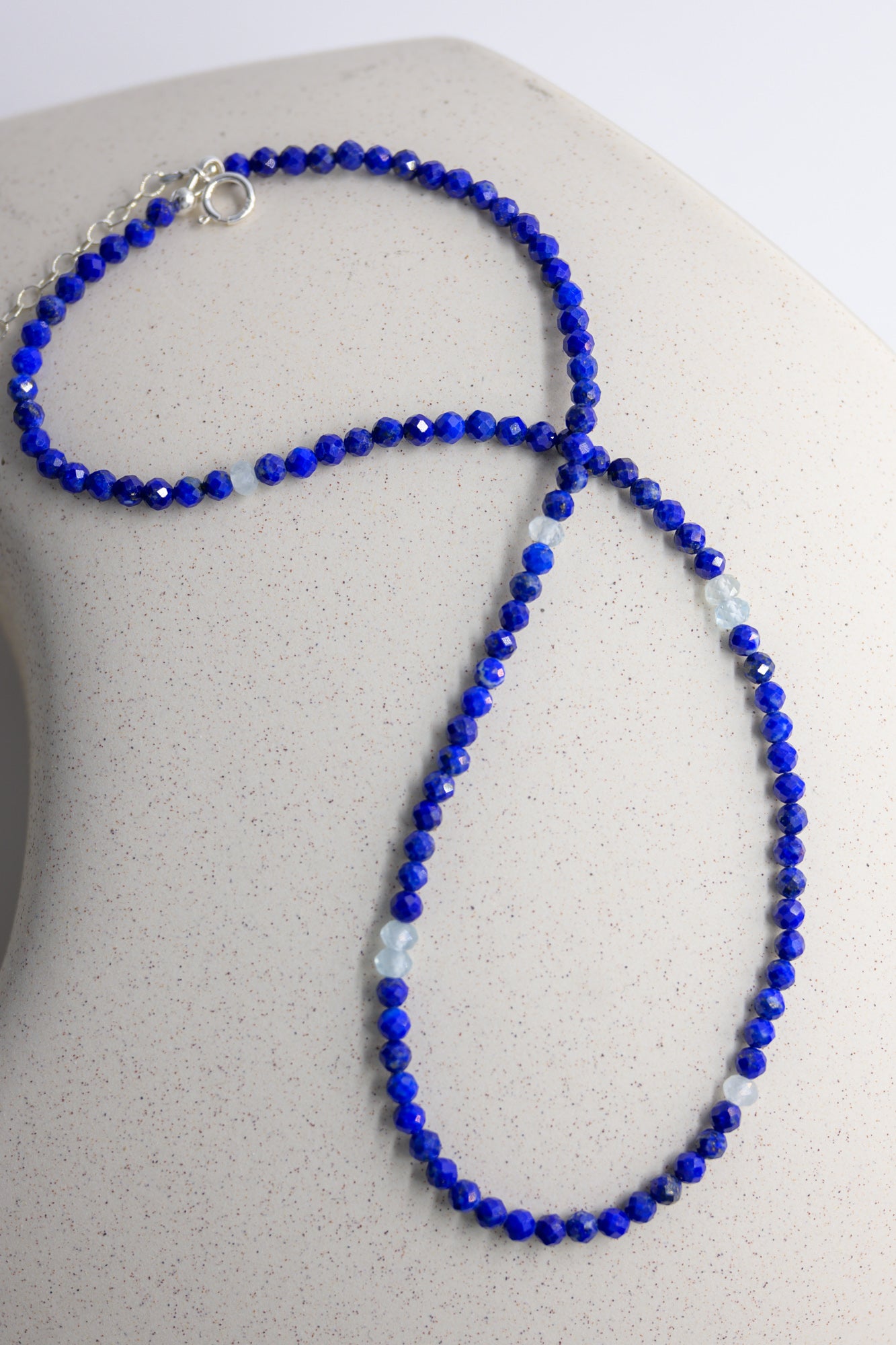 This necklace combines rich lapis and soft aquamarine. Perfect for layering or wearing alone, it easily pairs with other jewelry styles, from casual to elegant. Simple and versatile, it's an easy go-to piece.