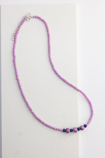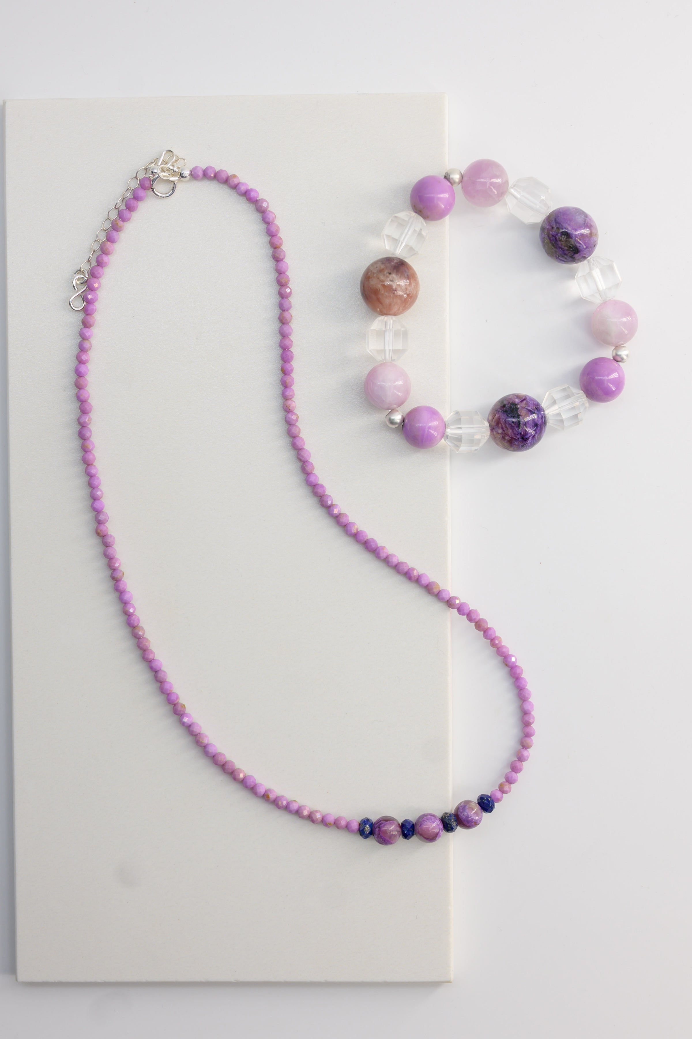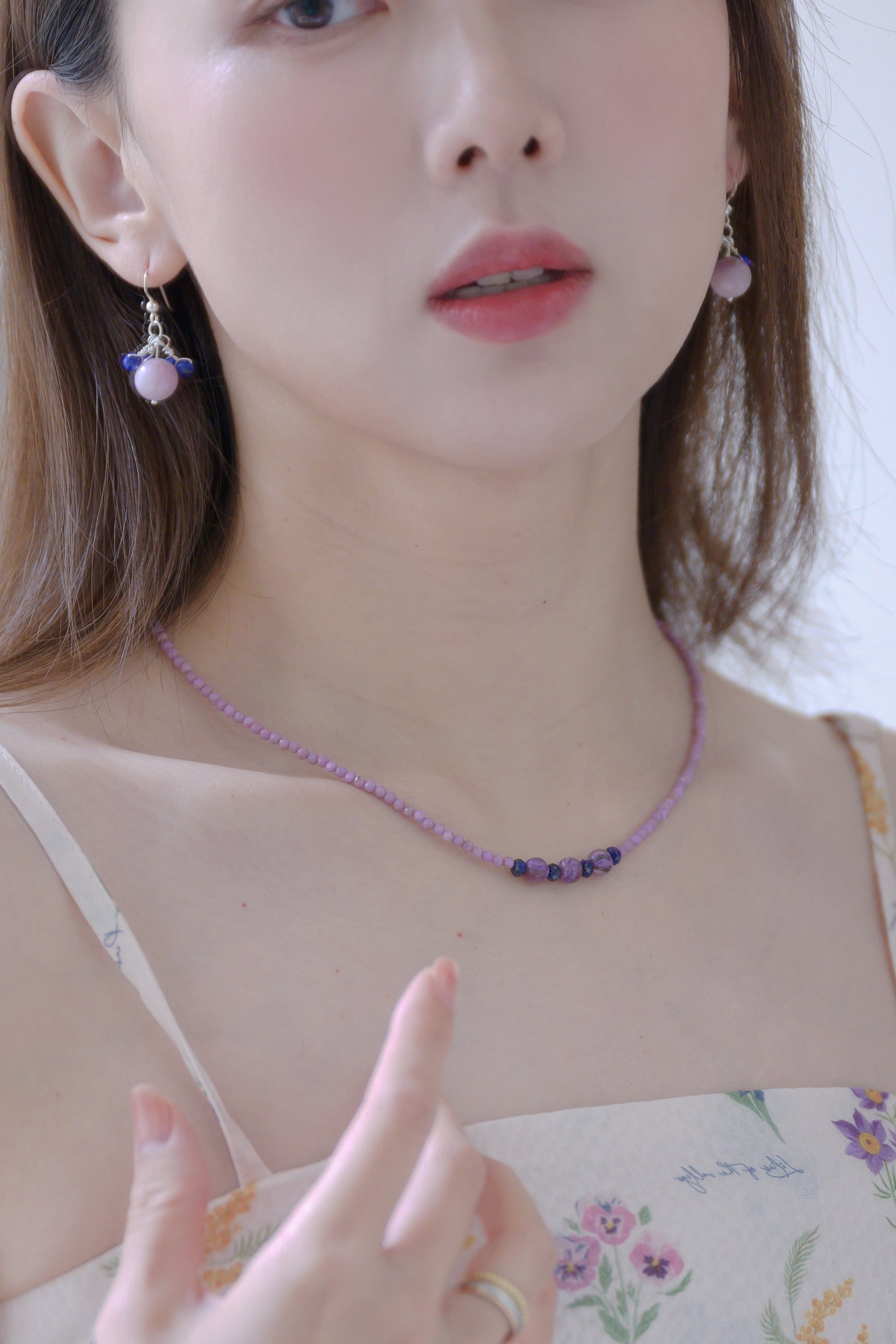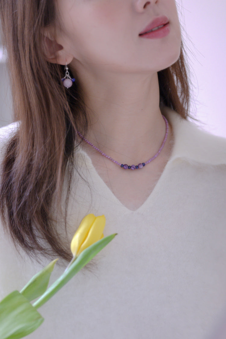 This necklace combines rich purple muscovite and soft phosphosiderite. Perfect for layering or wearing alone, it easily pairs with other jewelry styles, from casual to elegant. Simple and versatile, it's an easy go-to piece.