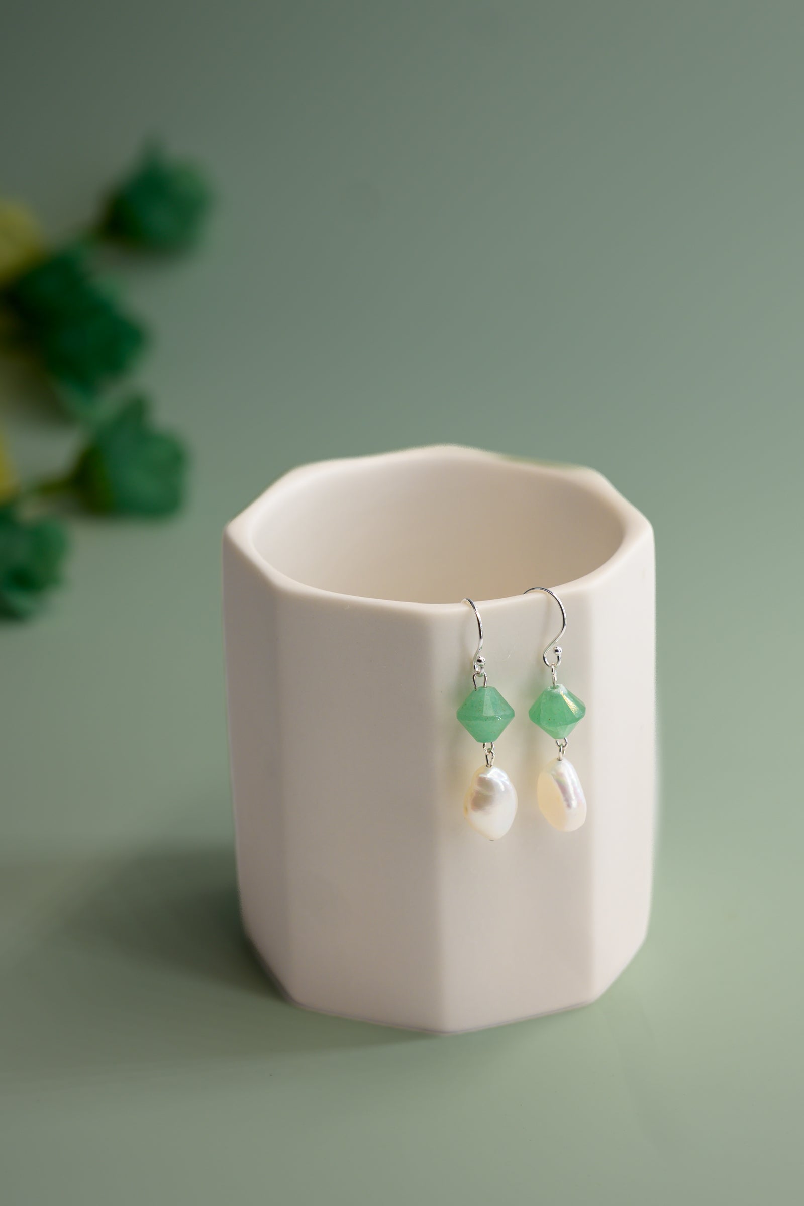 Blossom Canopy Earrings Green Aventurine Freshwater Pearl