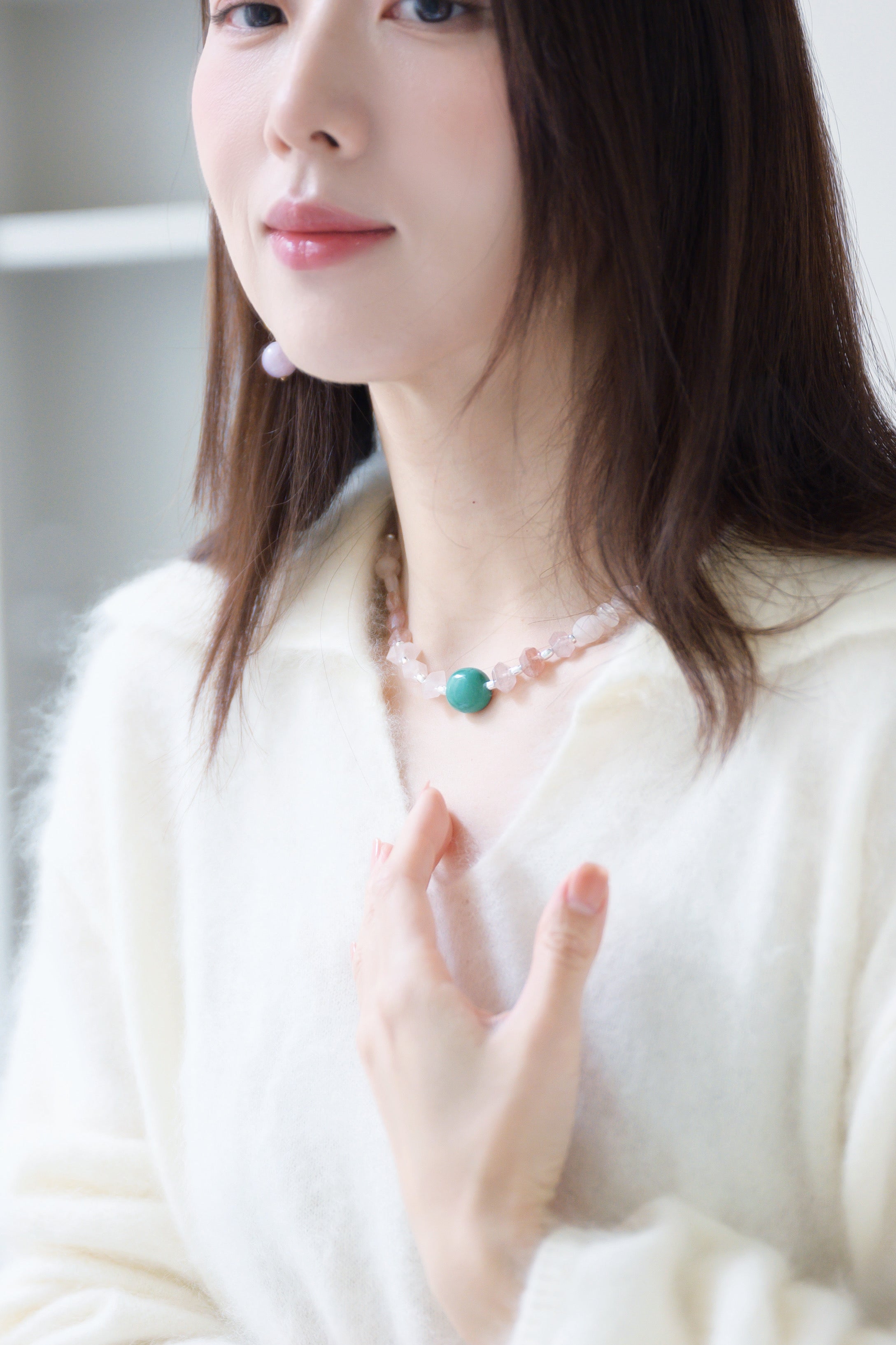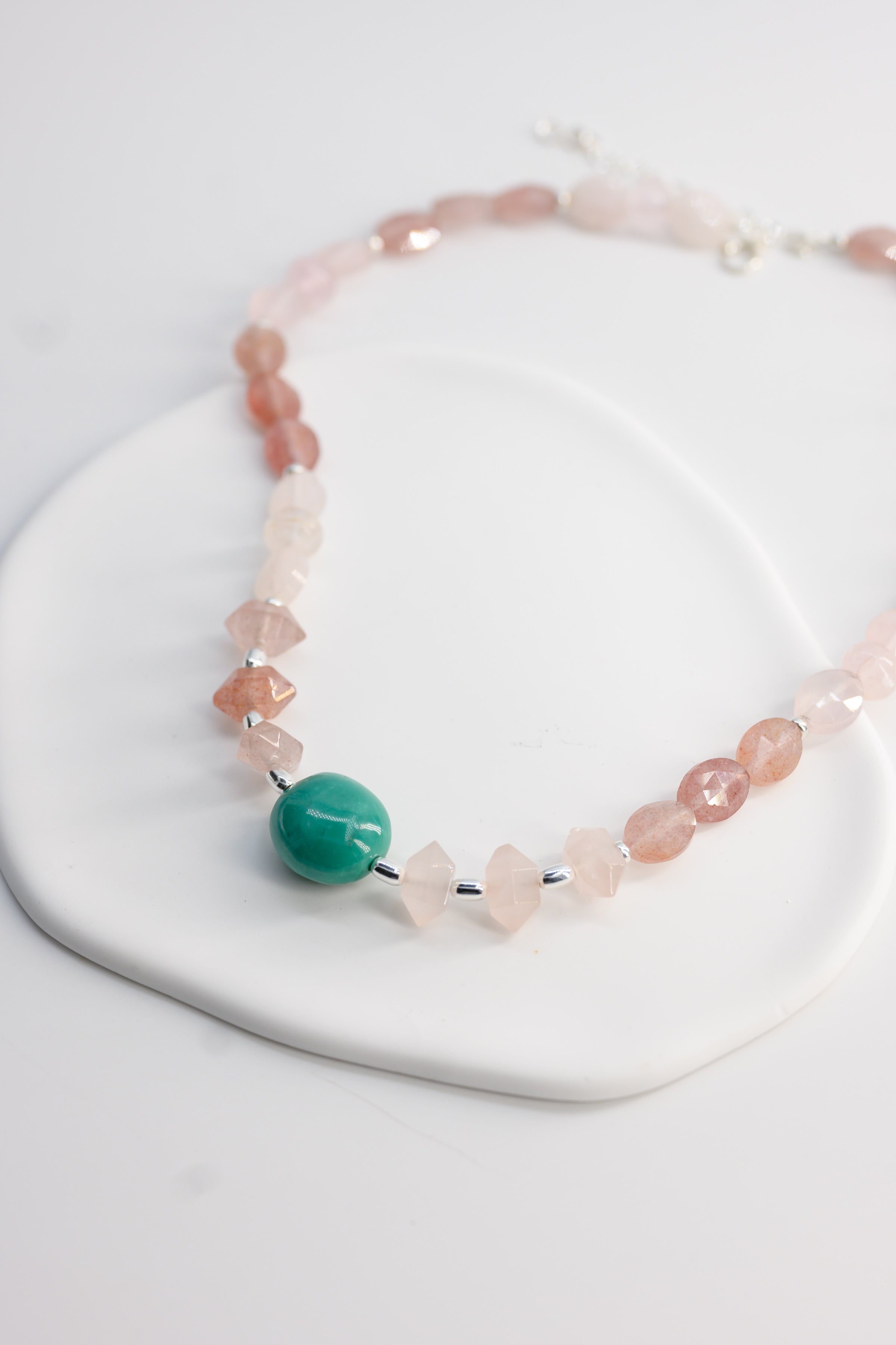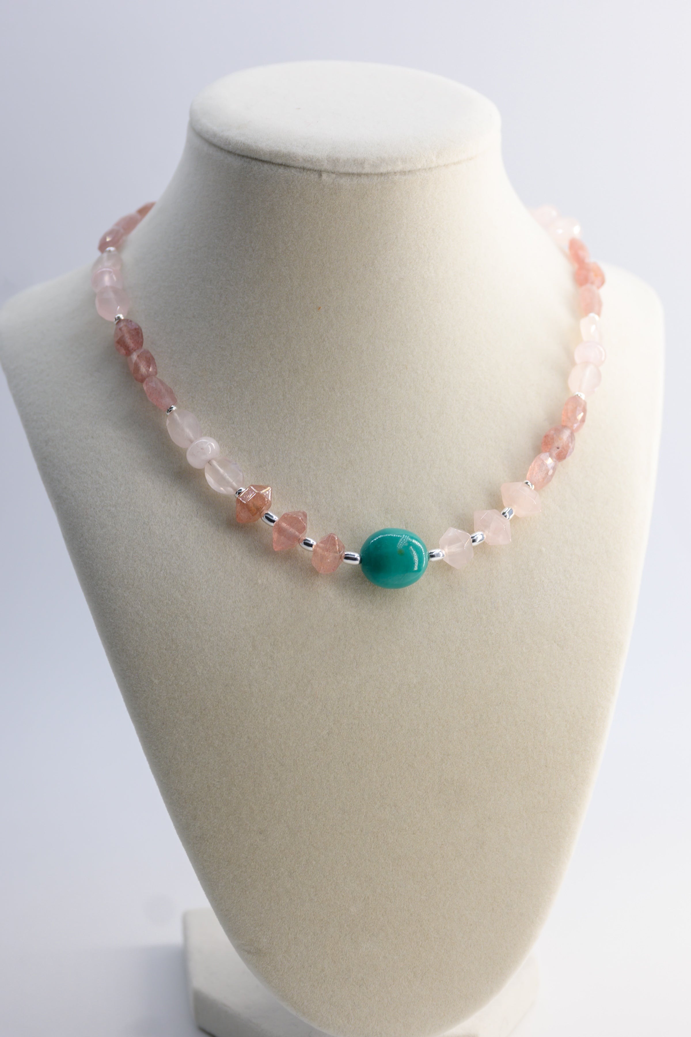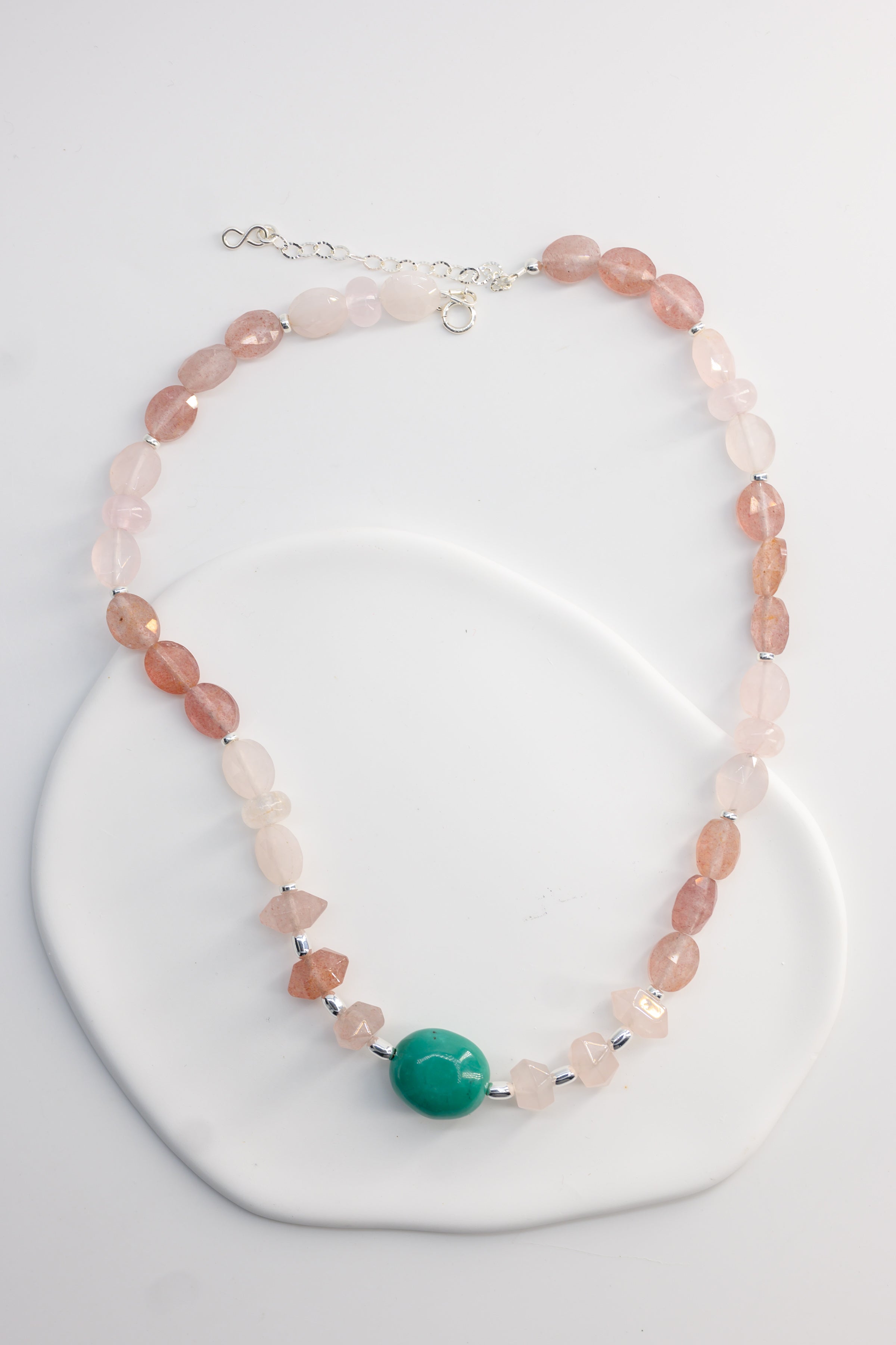 Blossom Within Necklace | Turquoise Madagascar Rose Quartz(A) Strawberry Quartz (A)