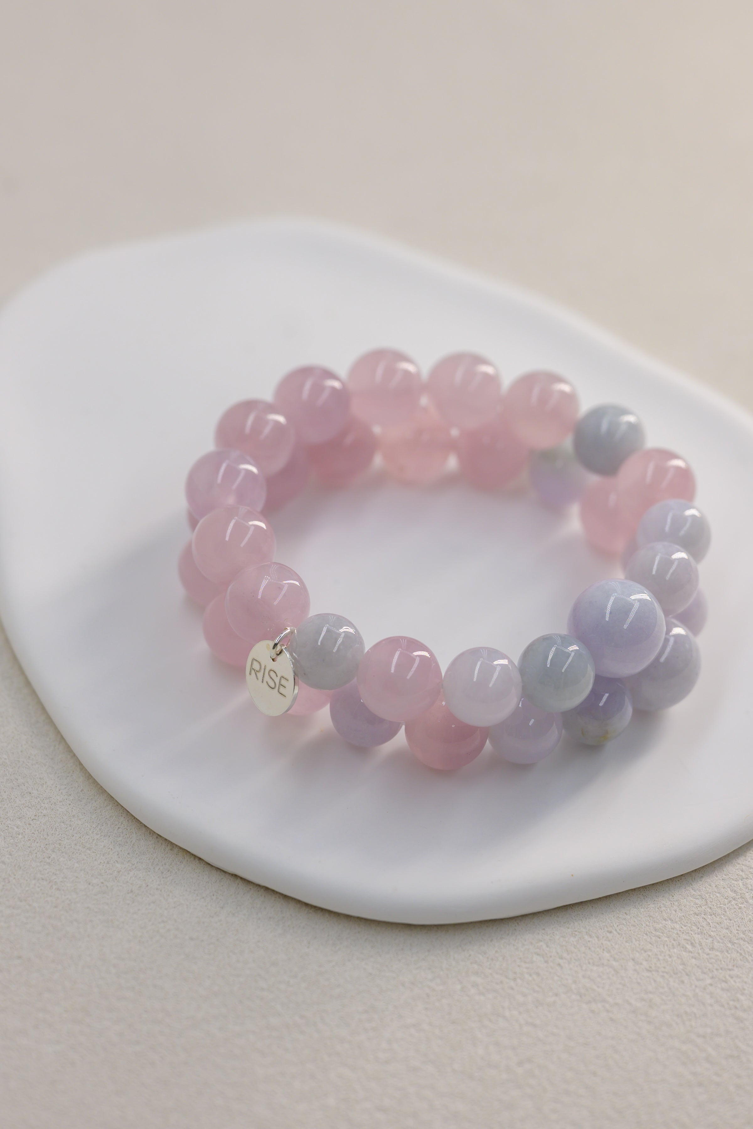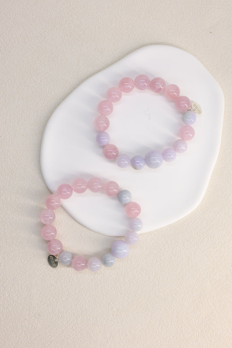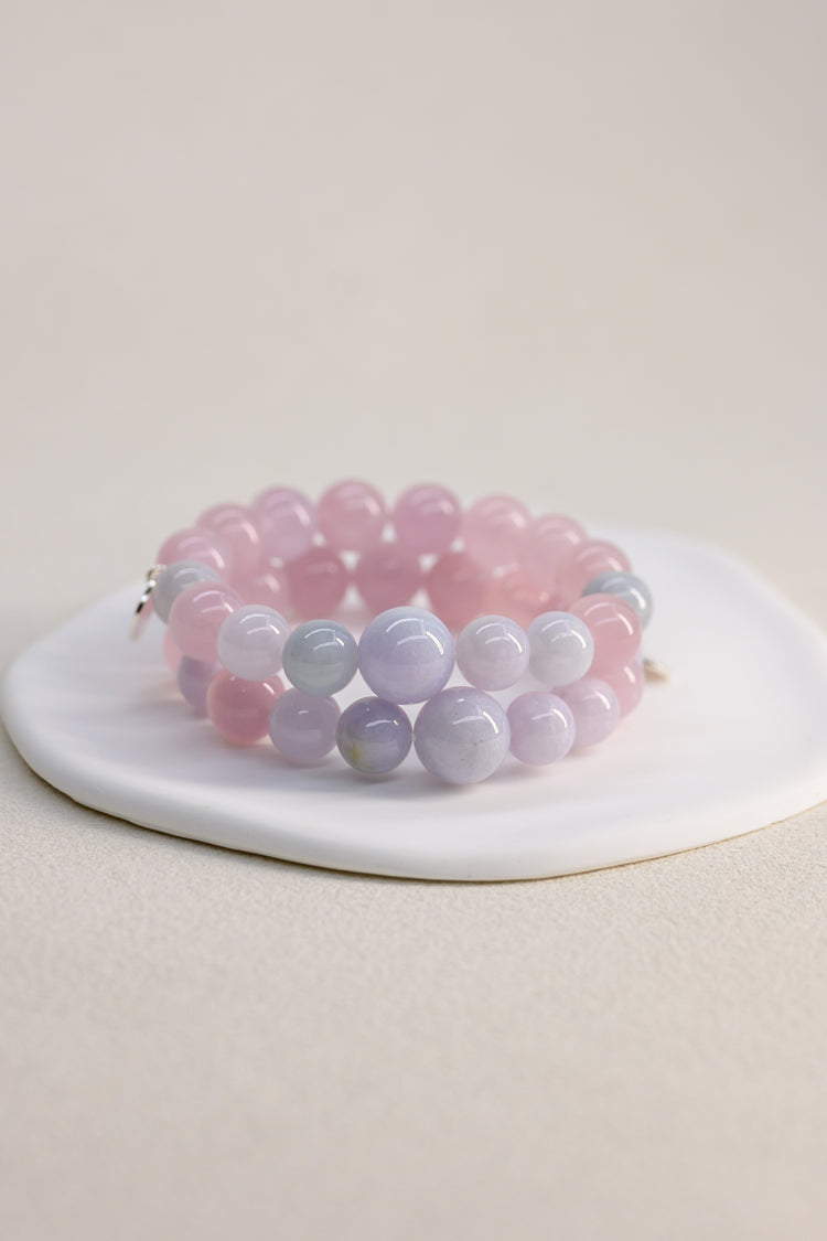 Bonded Bliss Bracelet | Madagascar Purple Rose Quartz(AA) Burma Jade(AA)
