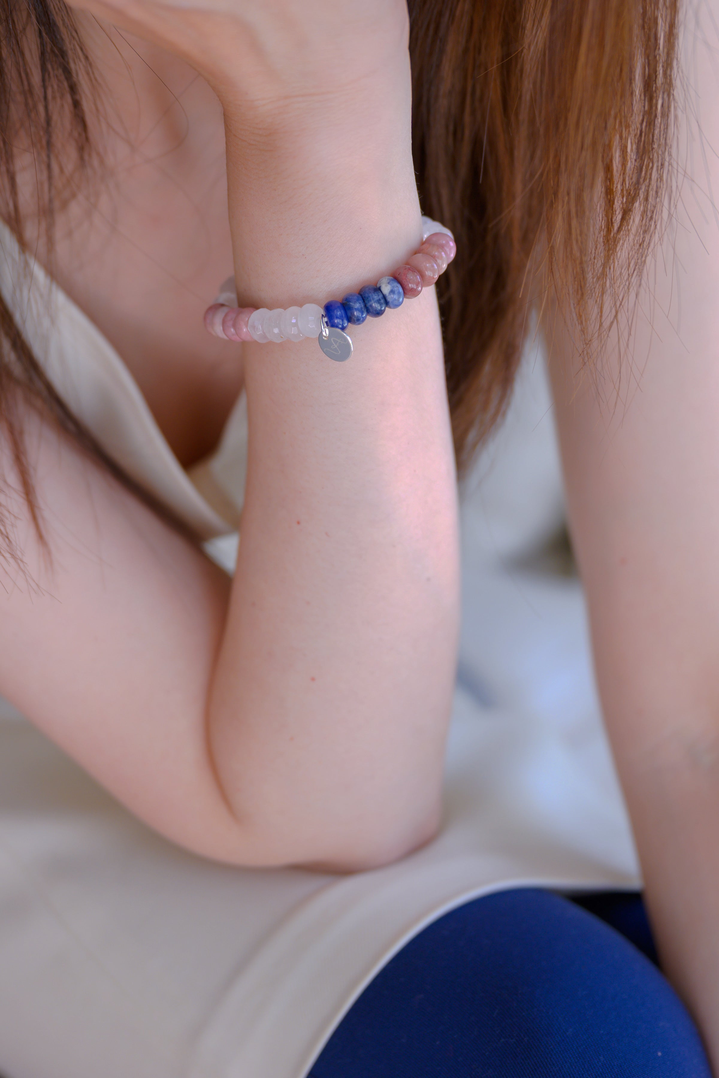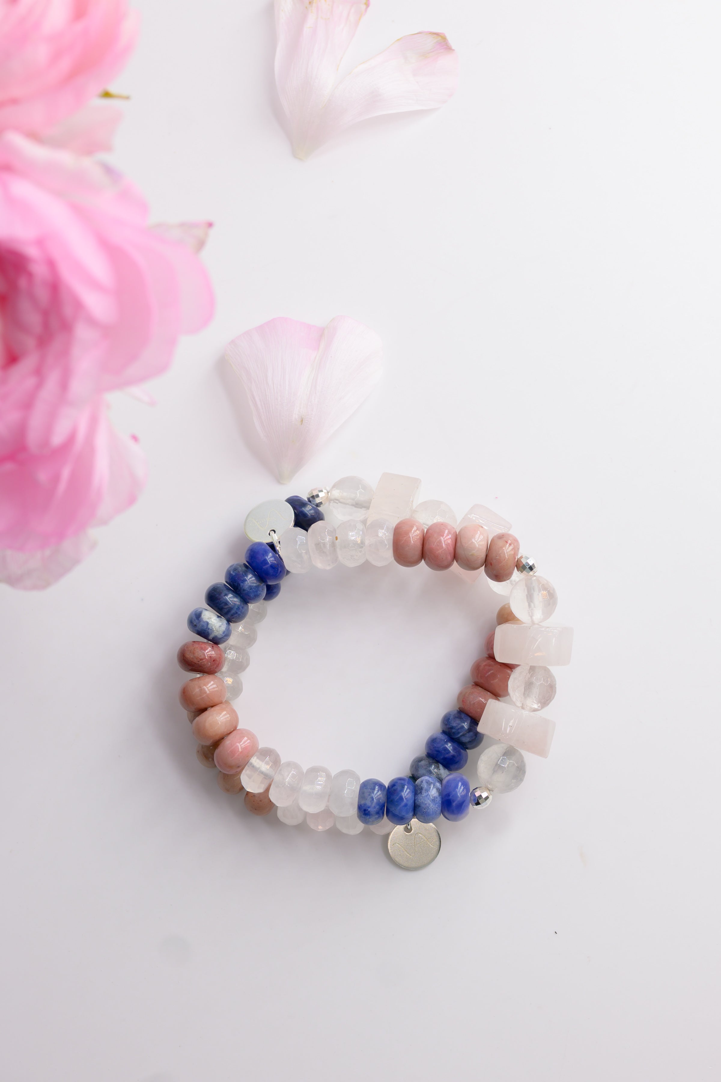 Bonded Bliss Bracelet | Madagascar Rose Quartz Wood Rhodonite Brazilian Sodalite