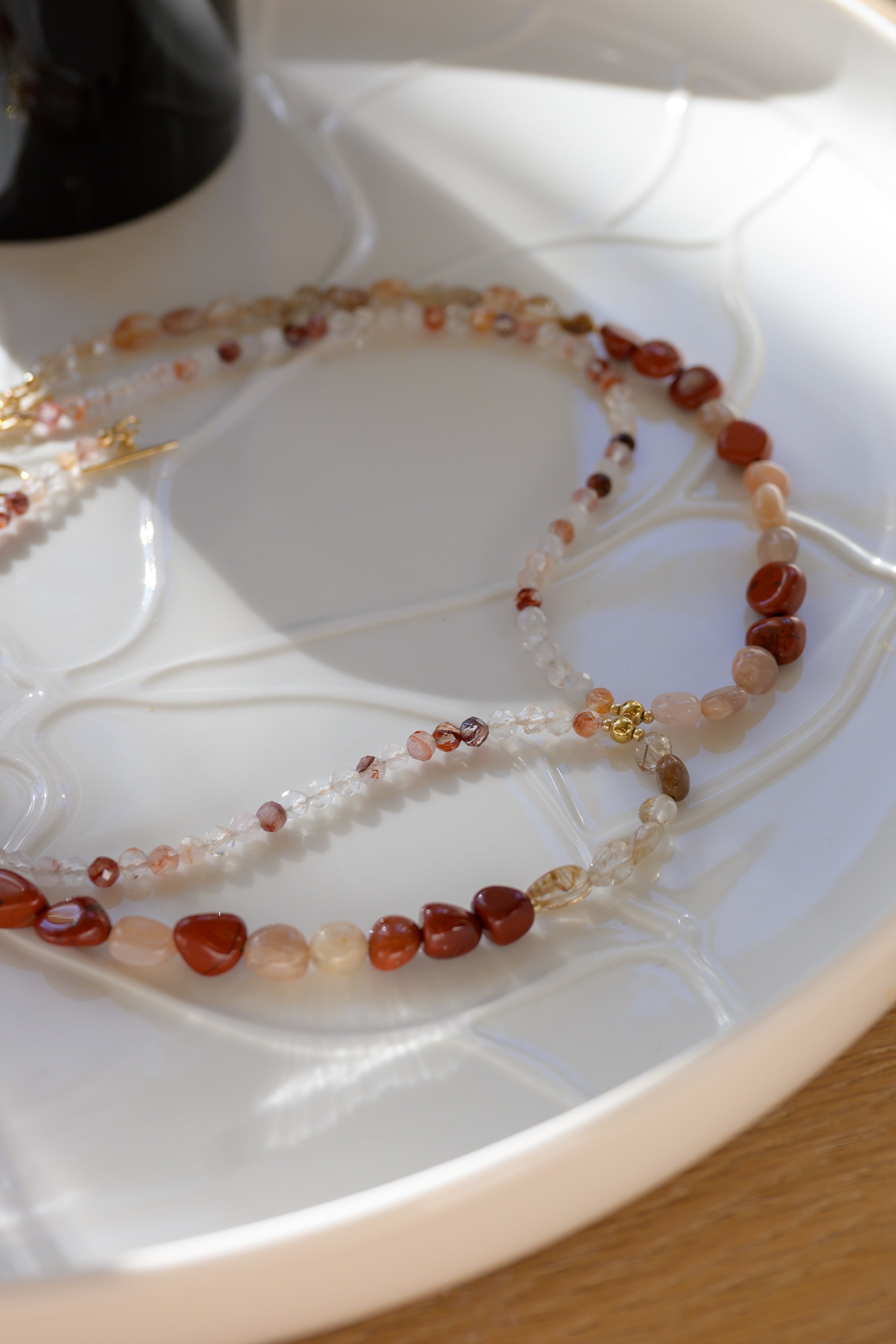Burning Desire 7In1 Necklace | Red Jasper Red Rutilated Quartz Peach Moonstone
