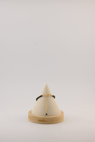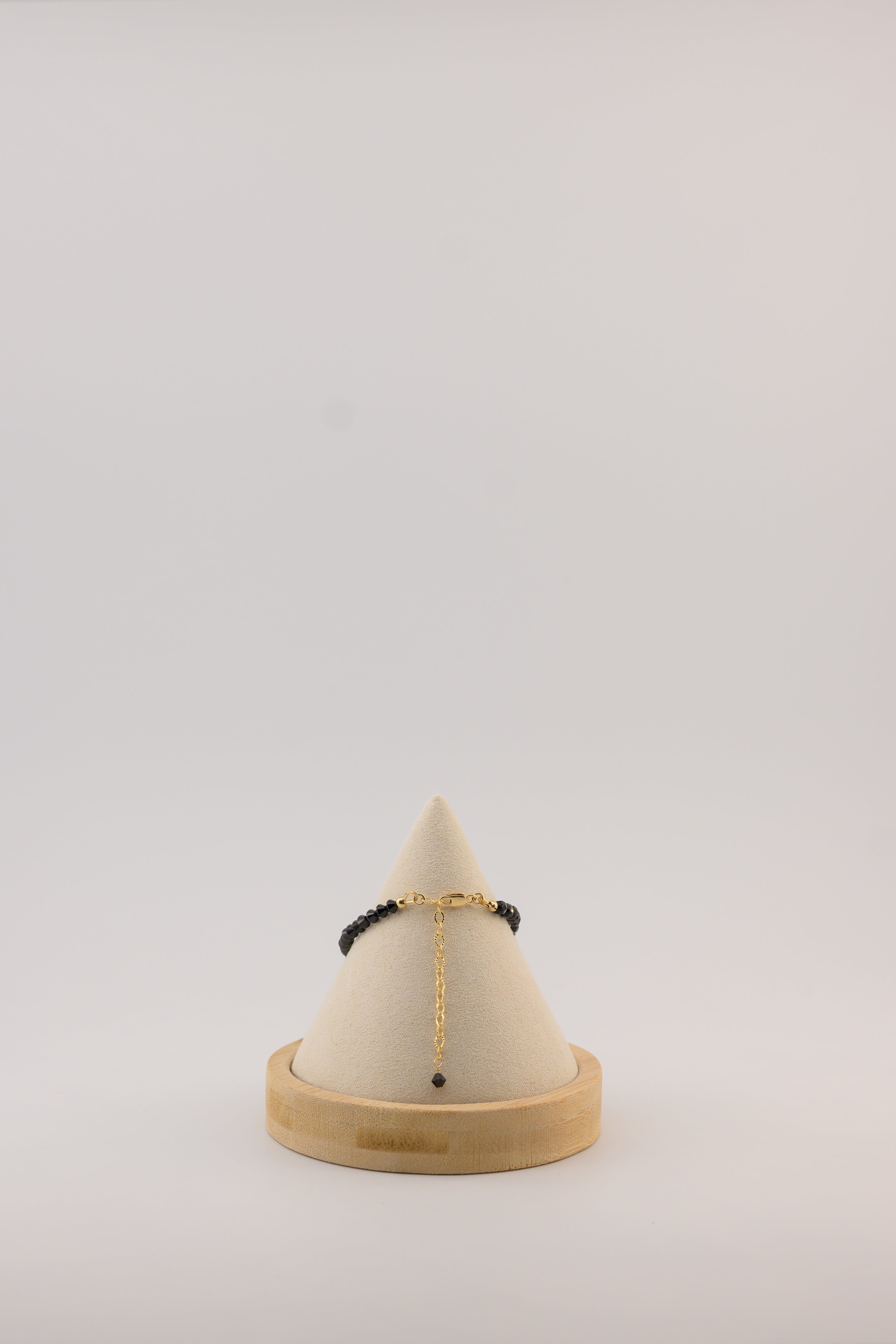 This stunning bracelet showcases an enchanting blend of citrine onyx and spinel beads, crafting a visually dynamic representation of a comet's luminous trail against the vast cosmic canvas.
