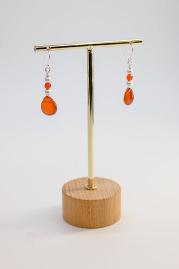 These elegant earrings feature cherry-shaped Carnelian drops, radiating a warm, rich reddish-orange hue that symbolizes vitality and joy.