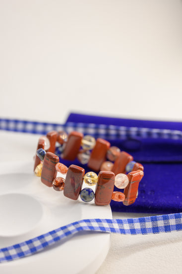 Fireside Ember Glow Bangle | Apple Jasper Red Hematold Quartz Citrine(AA) Lapis(A)