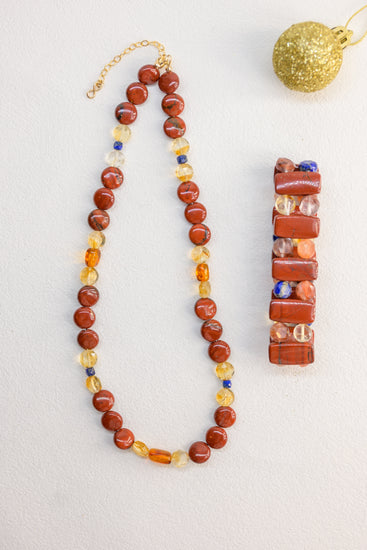 Red Hematoid Quartz adds lively energy, like sparks rising in the air as stories and smiles are shared among loved ones.