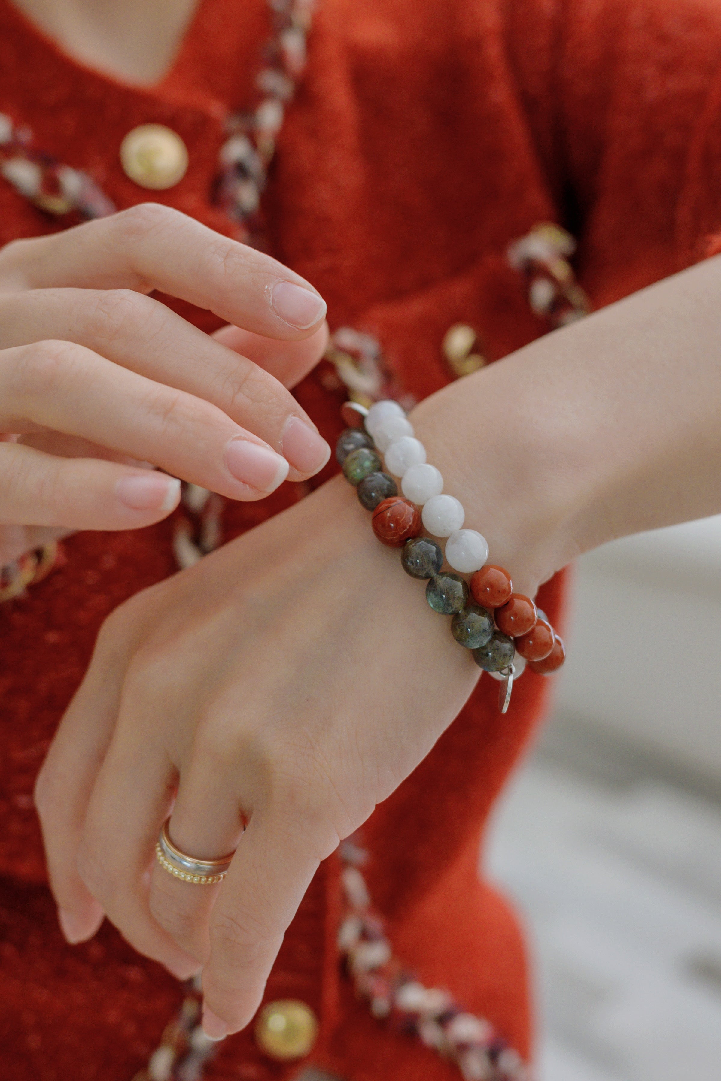 Fortune Flow Bracelet | Red Jasper Gray/White Moonstone