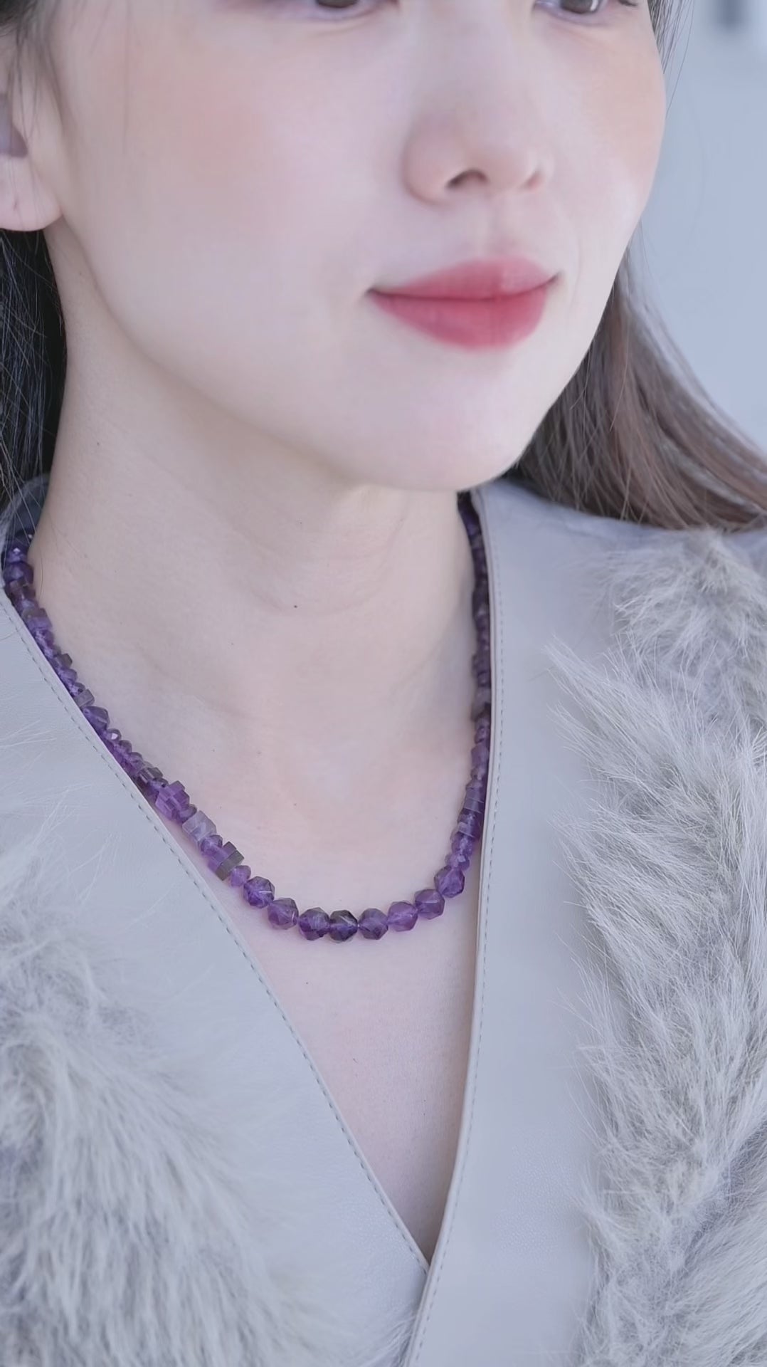 A: Using different cuts like the Squaredelle and Microfaceted Rondelle creates "visual texture." Even though the color is consistent, the way each shape catches and reflects light is different, giving the necklace a dynamic, high-end feel that a standard round-bead strand lacks.