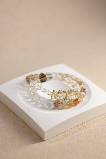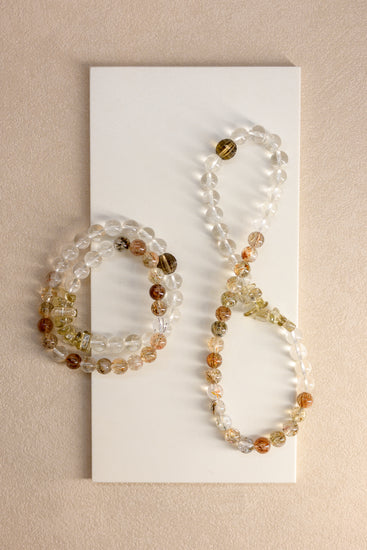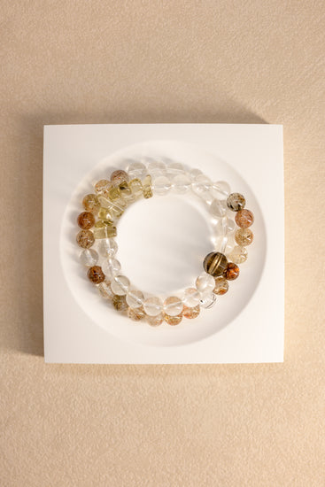 Golden Ambition Double-lined Bracelet | Black Super Seven Smoky Quartz Rock Crystal Quartz
