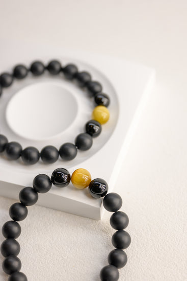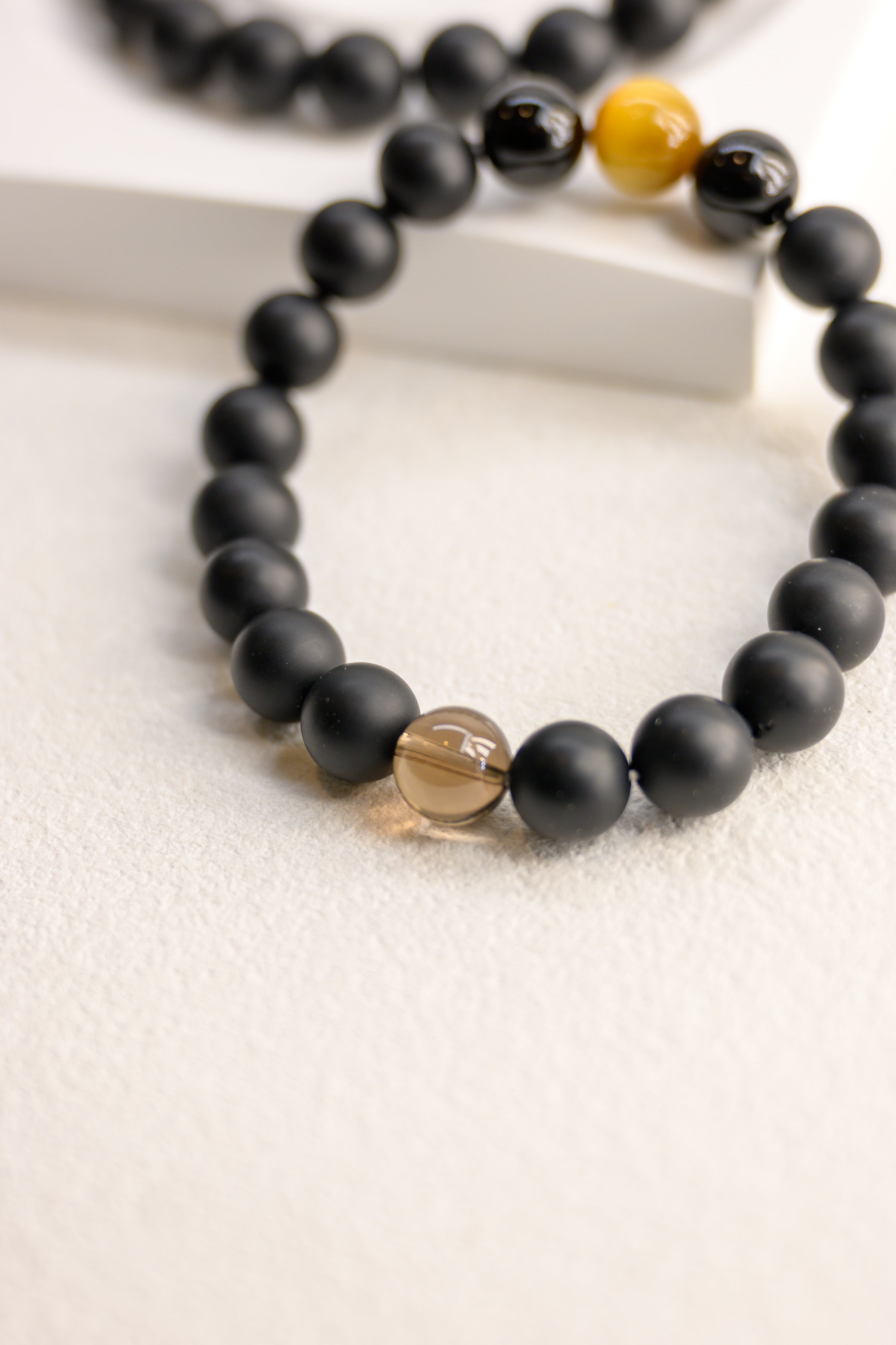 Golden Ambition Man Bracelet | Blonde Tiger's Eye Onyx (matte AA)Smoky Quartz