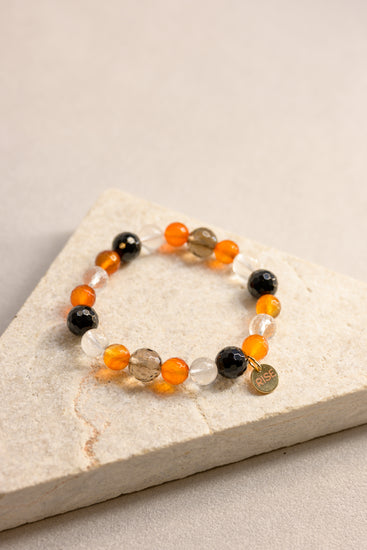 Golden Peak Bracelet | Carnelian Smoky Quartz Black Onyx Rock Crystal