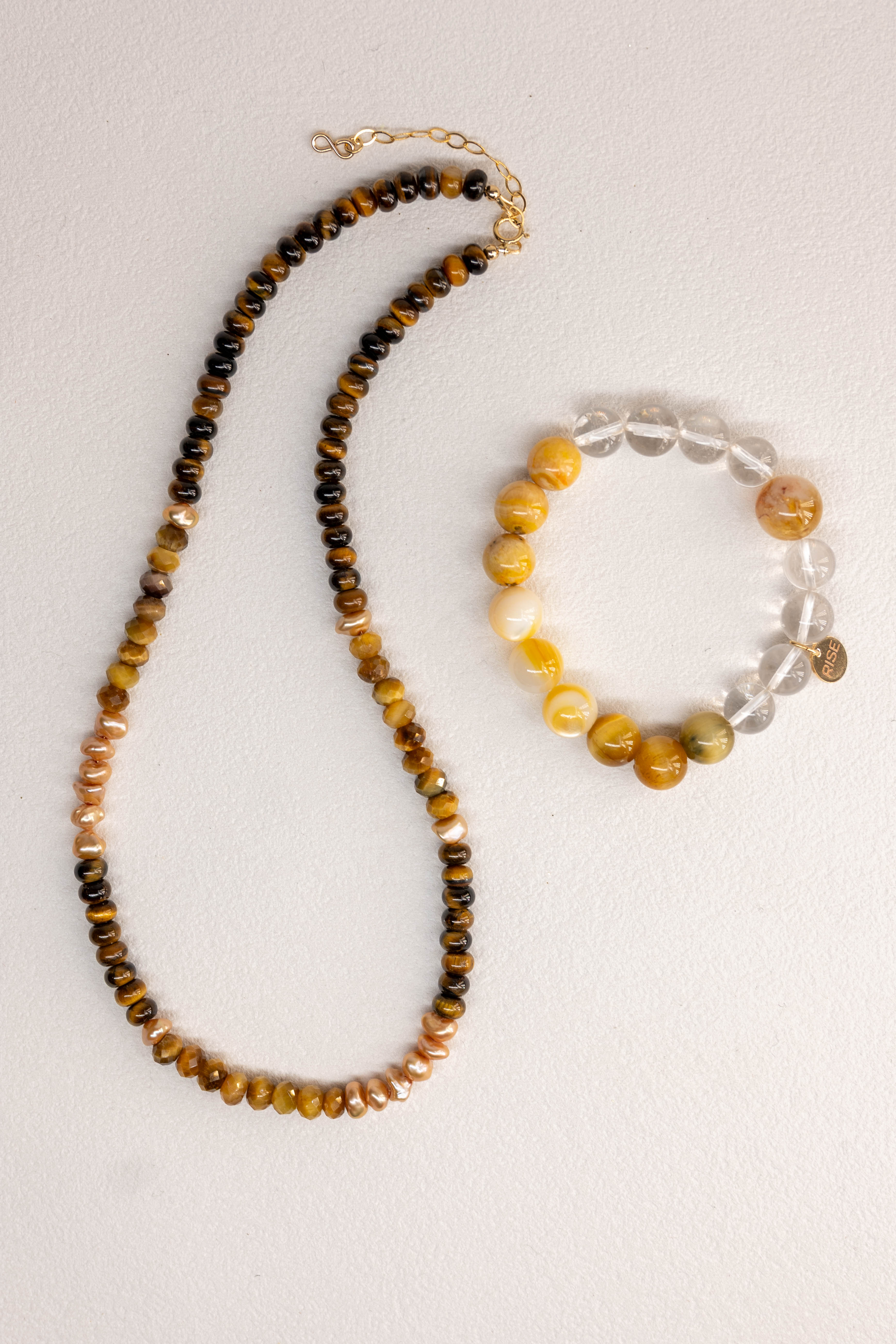Honeyed Power Necklace | Blonde Tiger Eyes Butterscotch Pearl
