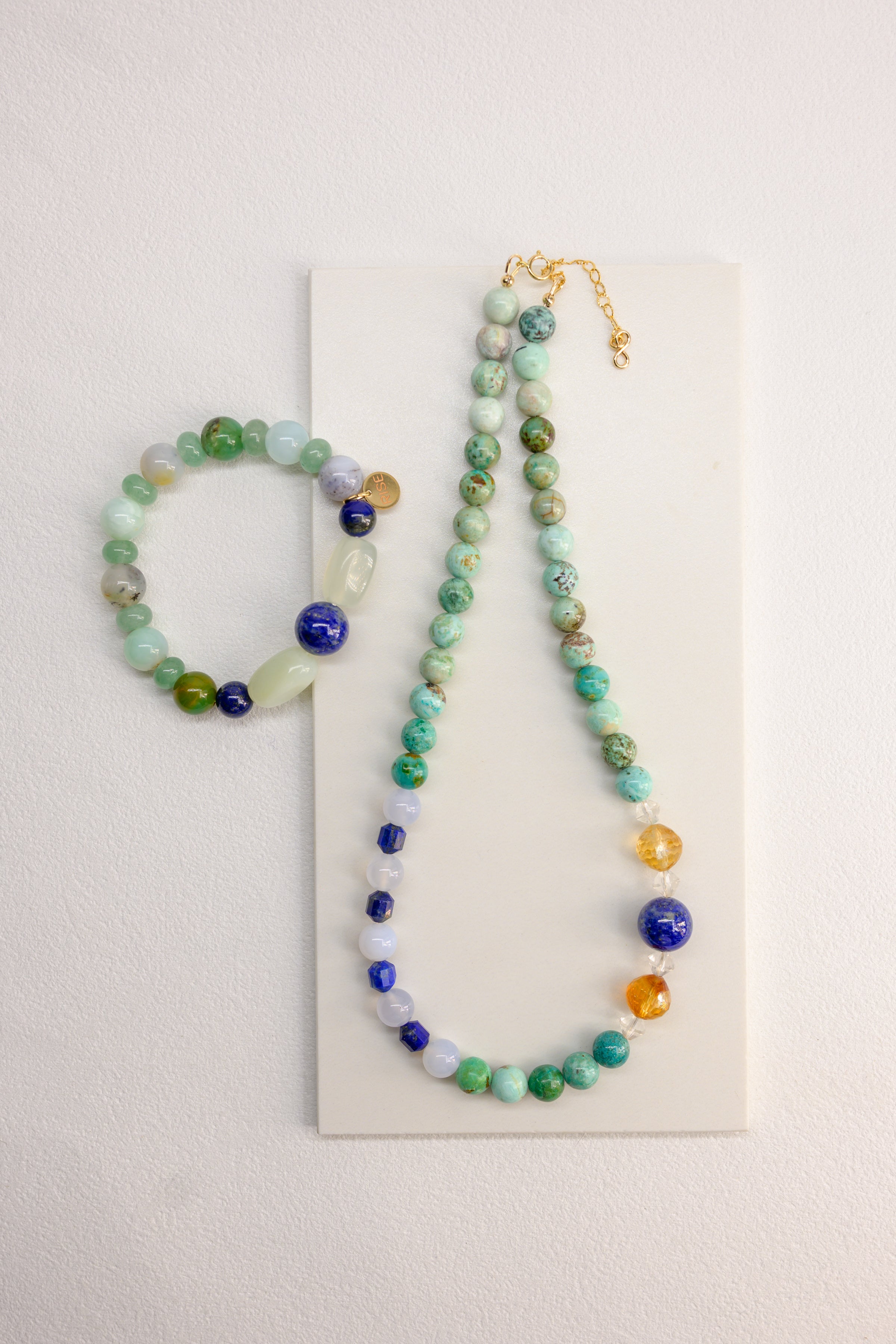 Lapis Skyfire Necklace | Peruvian Turquoise Lapis(AA) Citrine(A) Blue Chalcedony"