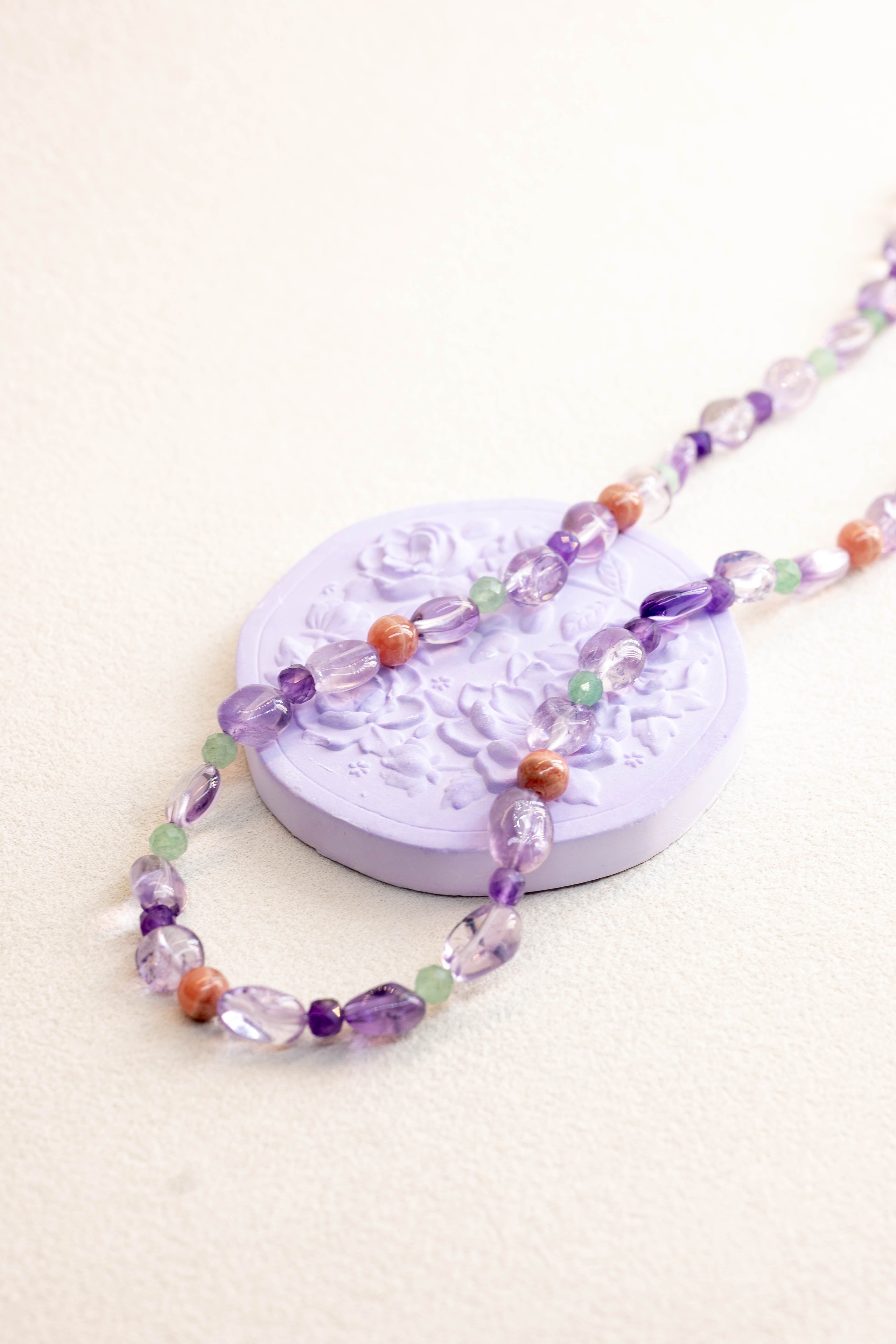 Lavender Horizon Necklace | Lavender Amethyst Rhodochrosite(A) Green Aventurine