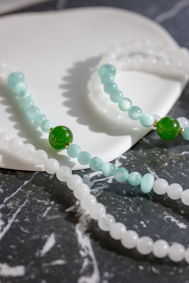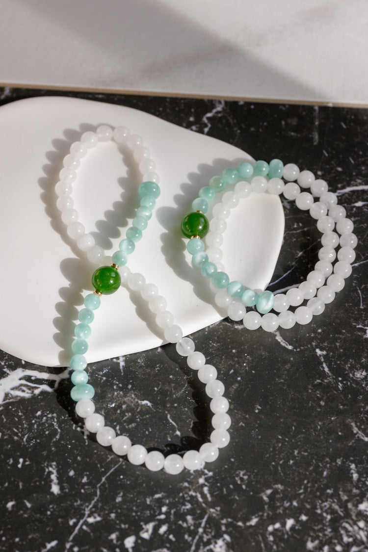 Longevity Charm Double-lined Bracelet | Canada B.C. Jade Russian Angelite White Jade