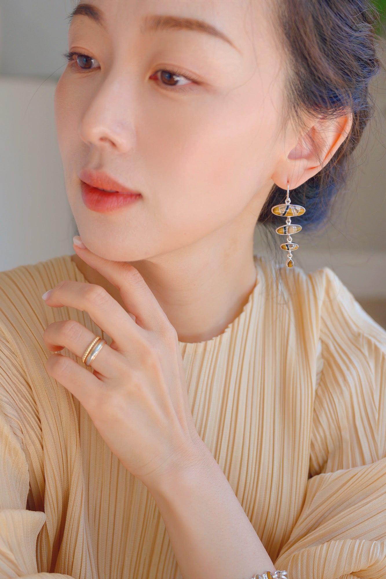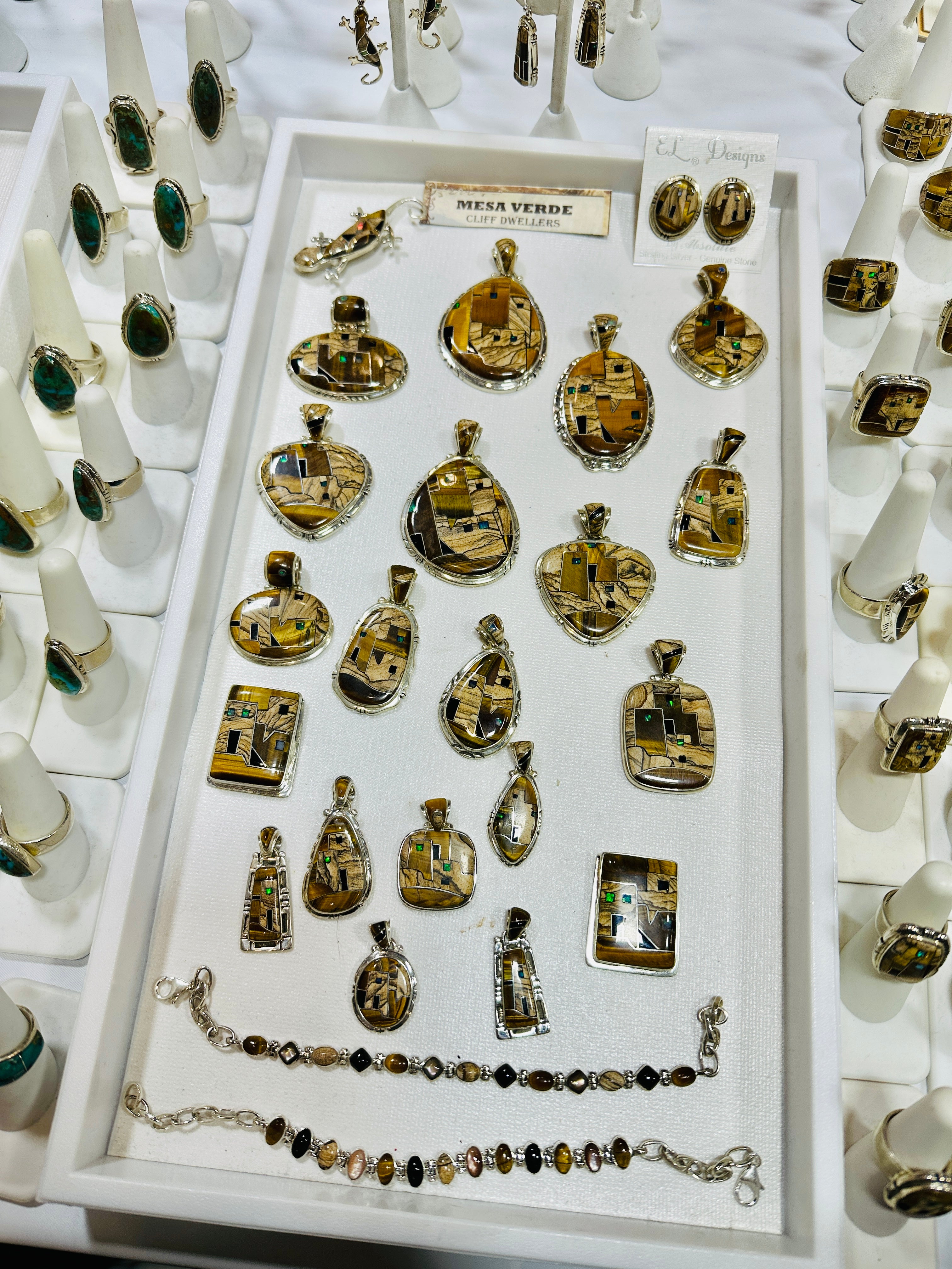 Inspired by the ancient cliff dwellings of Mesa Verde National Park, these earrings pay homage to the ingenuity and spirit of the Ancestral Puebloans. Crafted with precision, they feature warm earth-toned gemstones reminiscent of sunlit sandstone cliffs, accented with silver inlays that echo the intricate masonry of the dwellings. Hand-drawn silver wires provide a rustic yet refined touch, symbolizing the enduring strength of these historic structures. A timeless blend of heritage and artistry, these earrings capture the essence of a civilization built into the heart of the canyon.