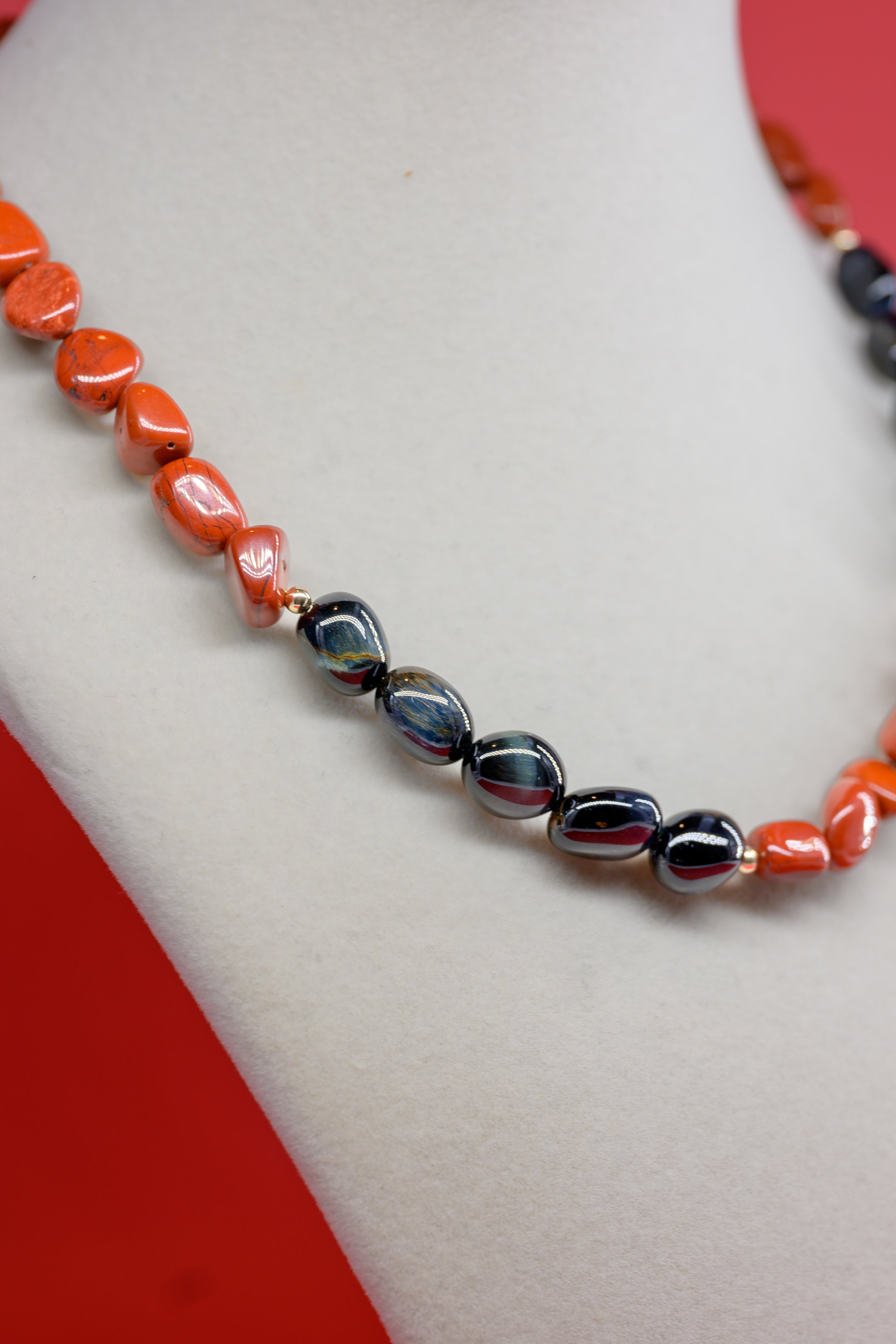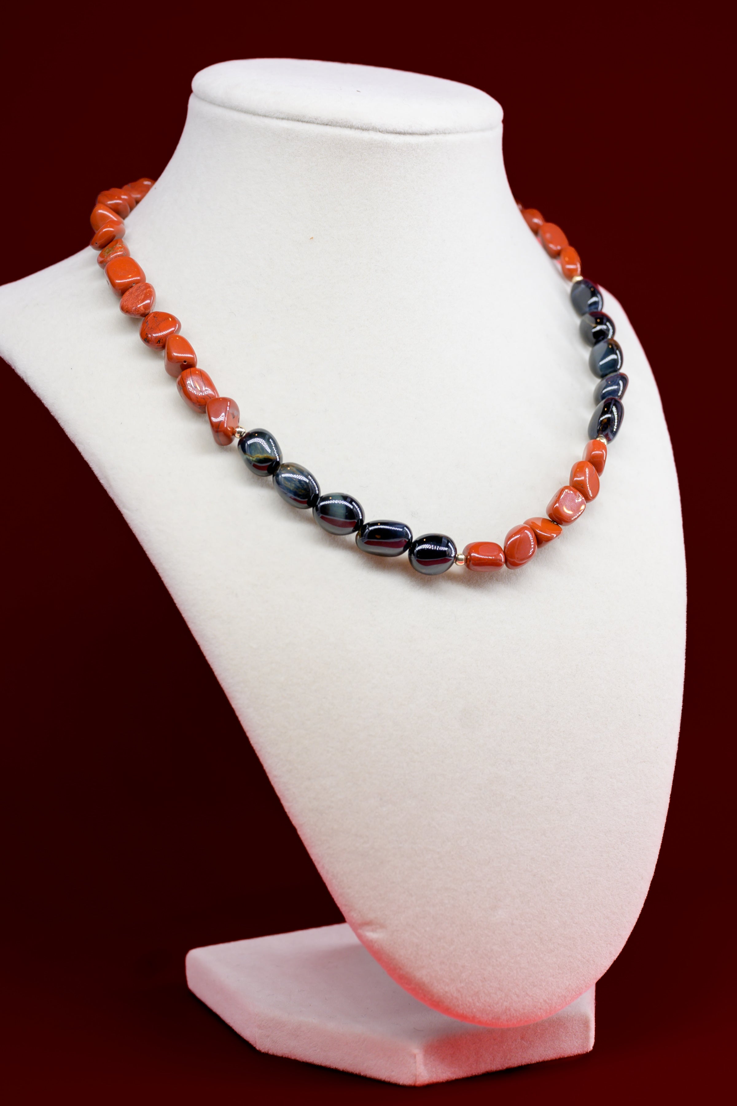 Midnight Spark Necklace | Blue Tiger Eye Red Jasper