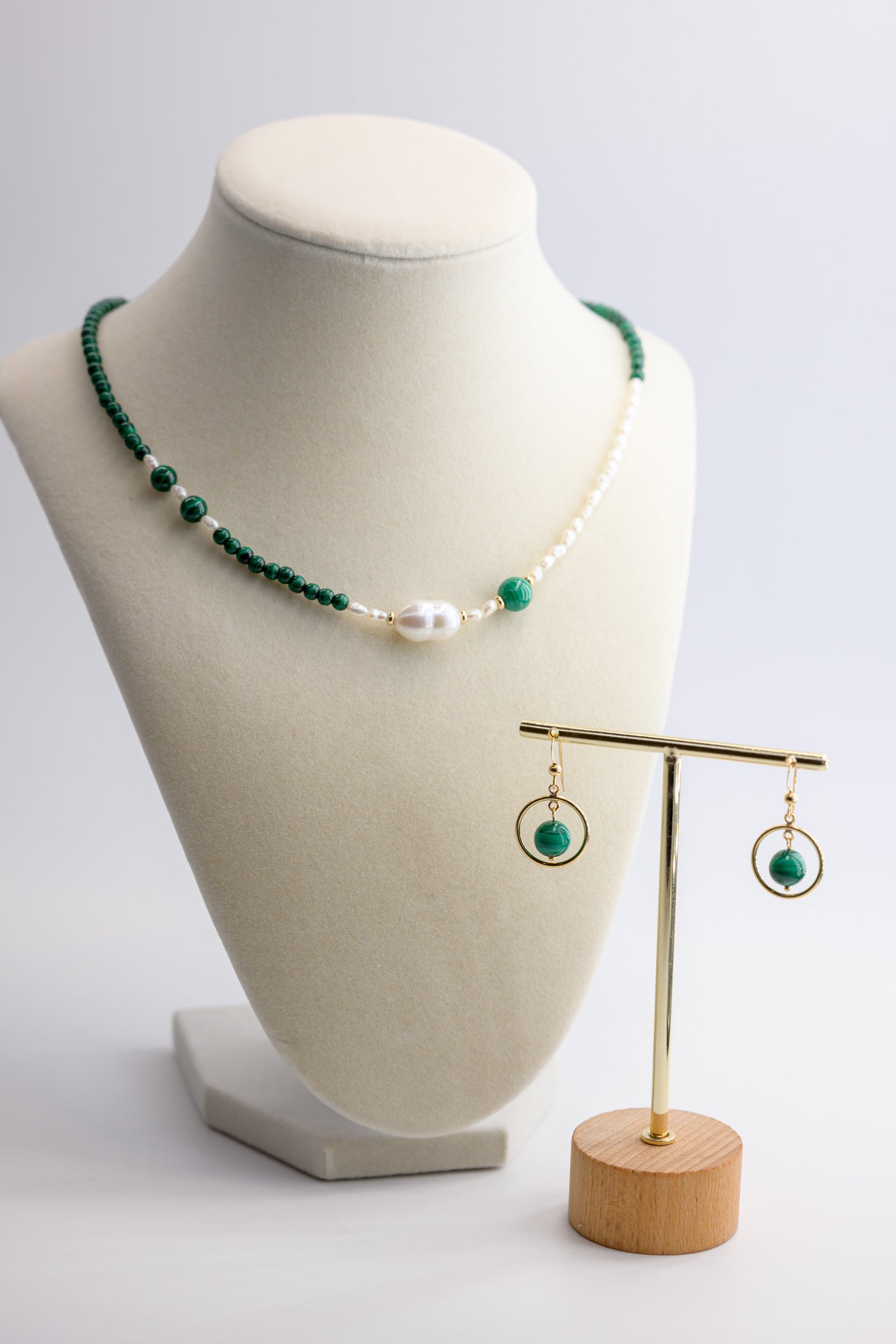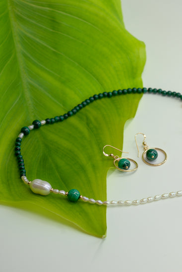 Moonbeam Dewdrop Malachite Jewelry Set