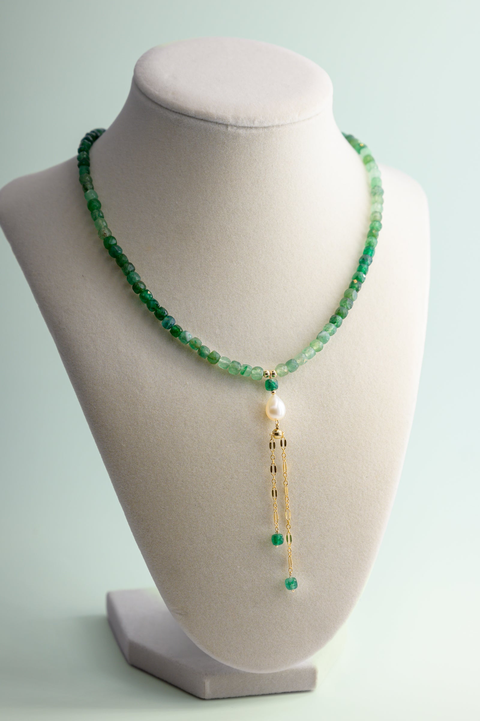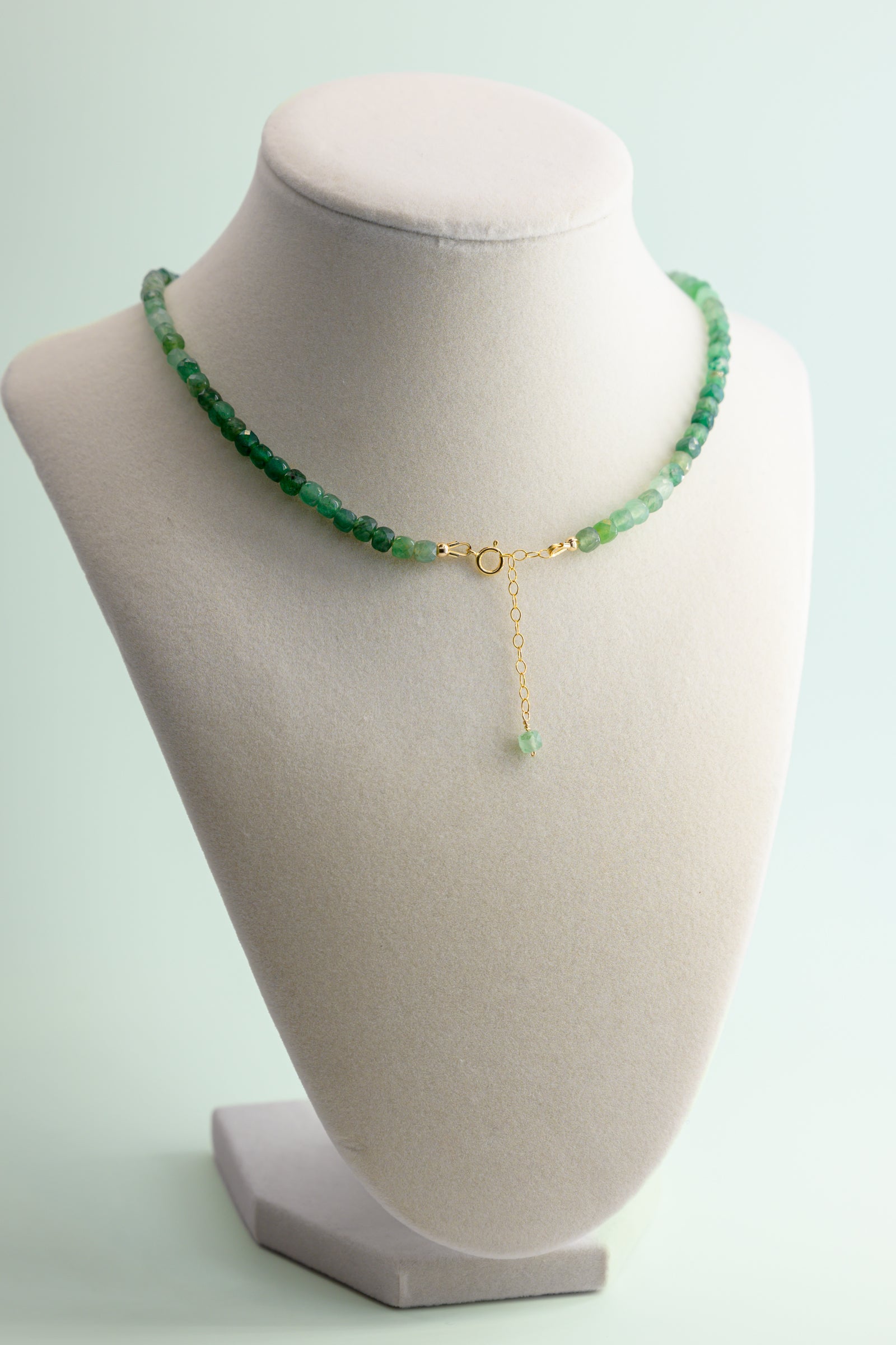 Mossy Glen Necklace Green Aventurine Shaded Cube