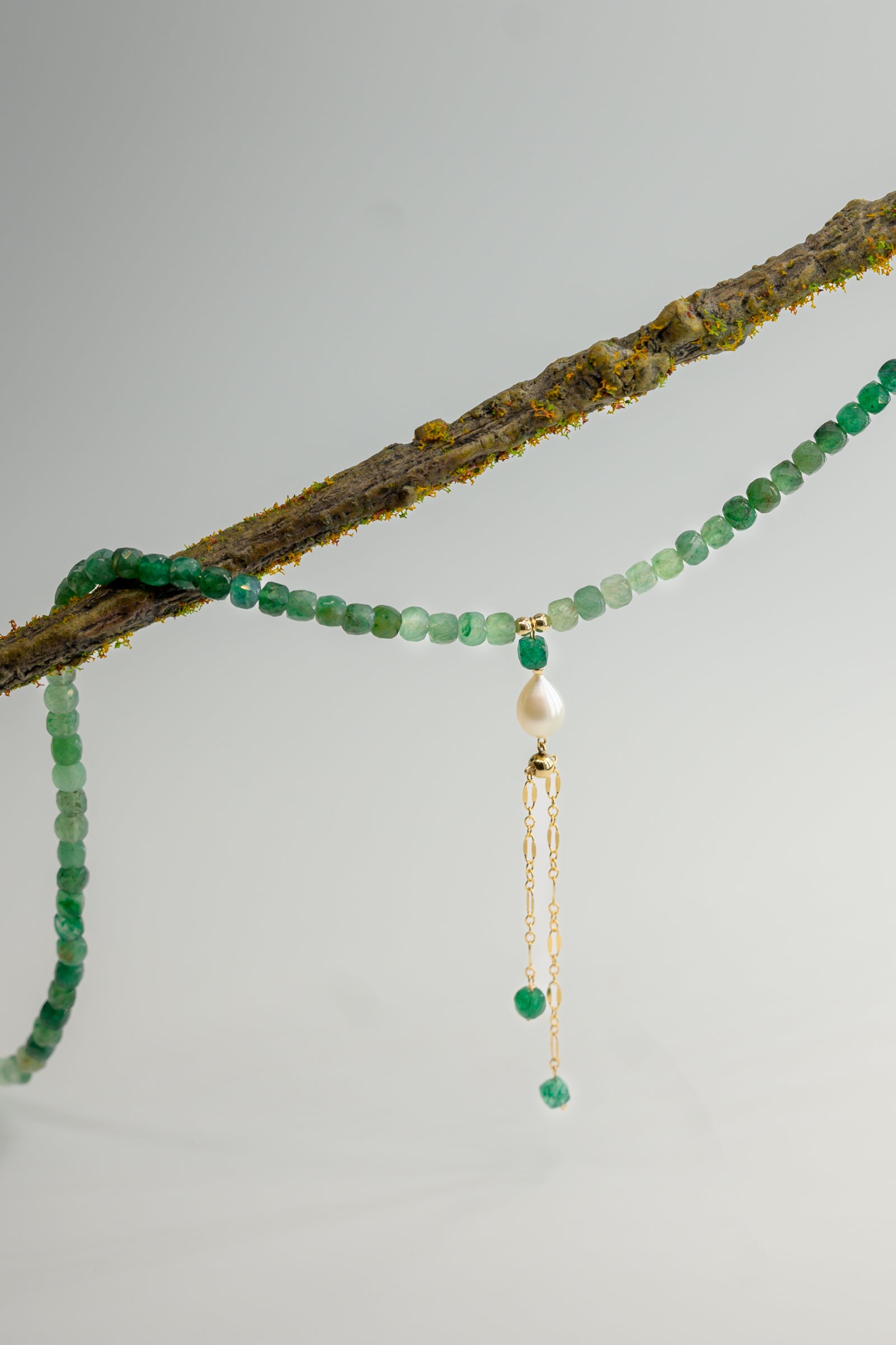 Embrace the serene spirit of the forest with our Mossy Glen Necklace, artfully crafted with shaded Green Aventurine cube beads. This stunning piece harnesses the lush vitality of Green Aventurine, a gemstone cherished for its abilities to attract prosperity and encourage perseverance. The cube beads, arrayed in a gradient of natural green shades, evoke the diverse hues of a moss-covered forest floor, offering both a grounding connection to nature and a stylish touch of earthy elegance.