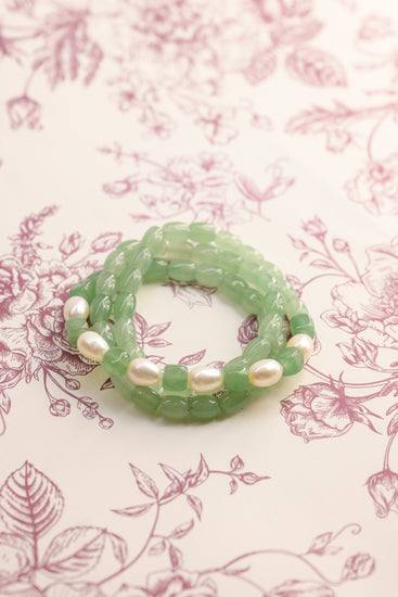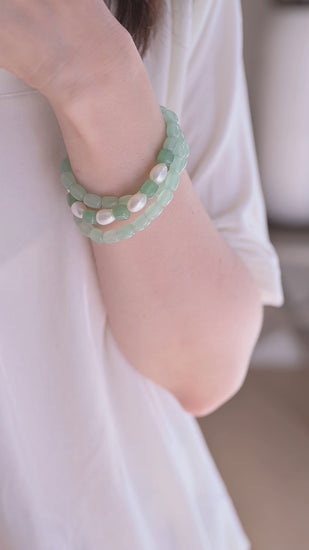 OnlyOne 1-9 Necklace//Three Wrapped Bracelet | Green Aventurine Freshwater Pearl