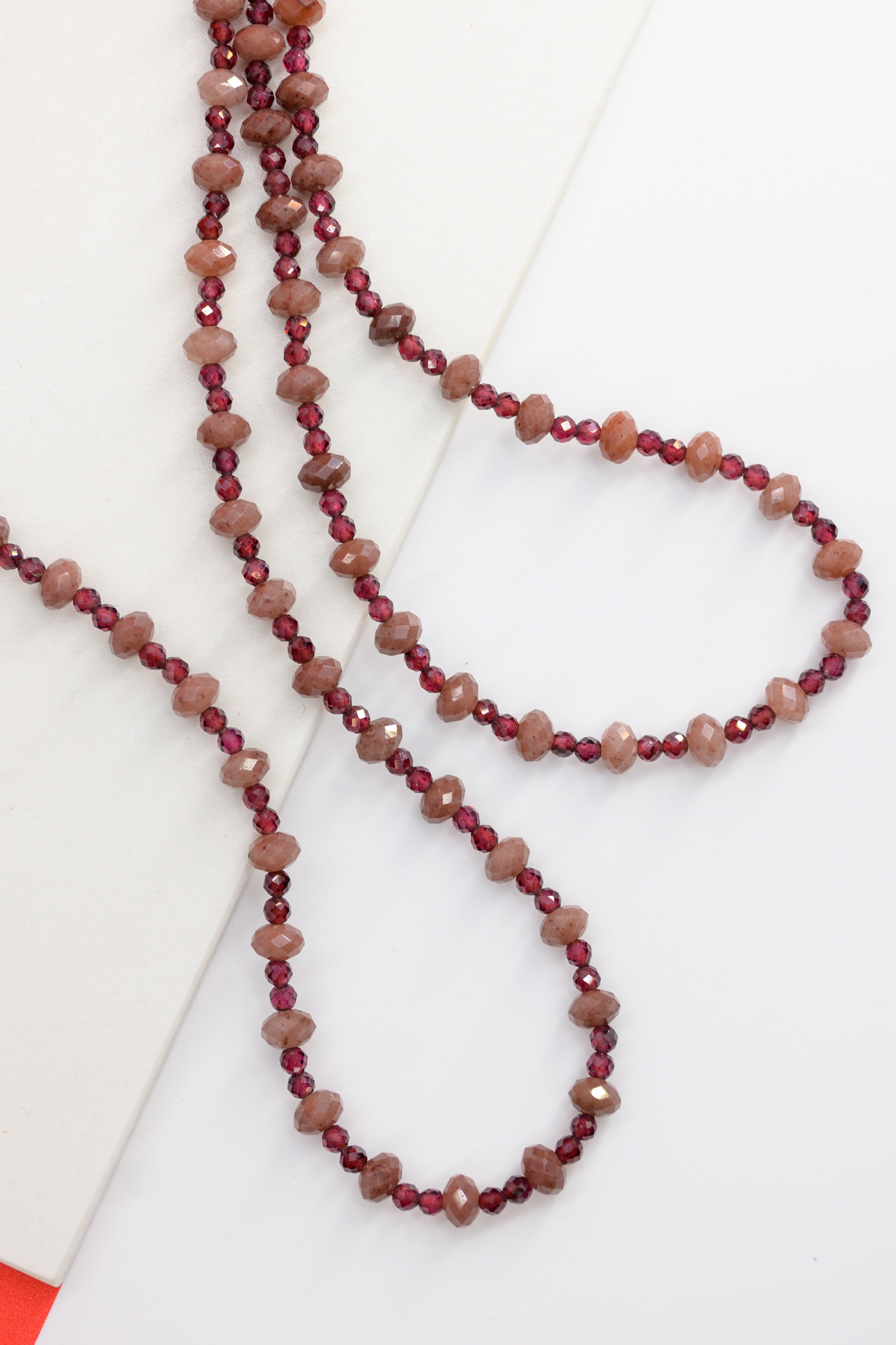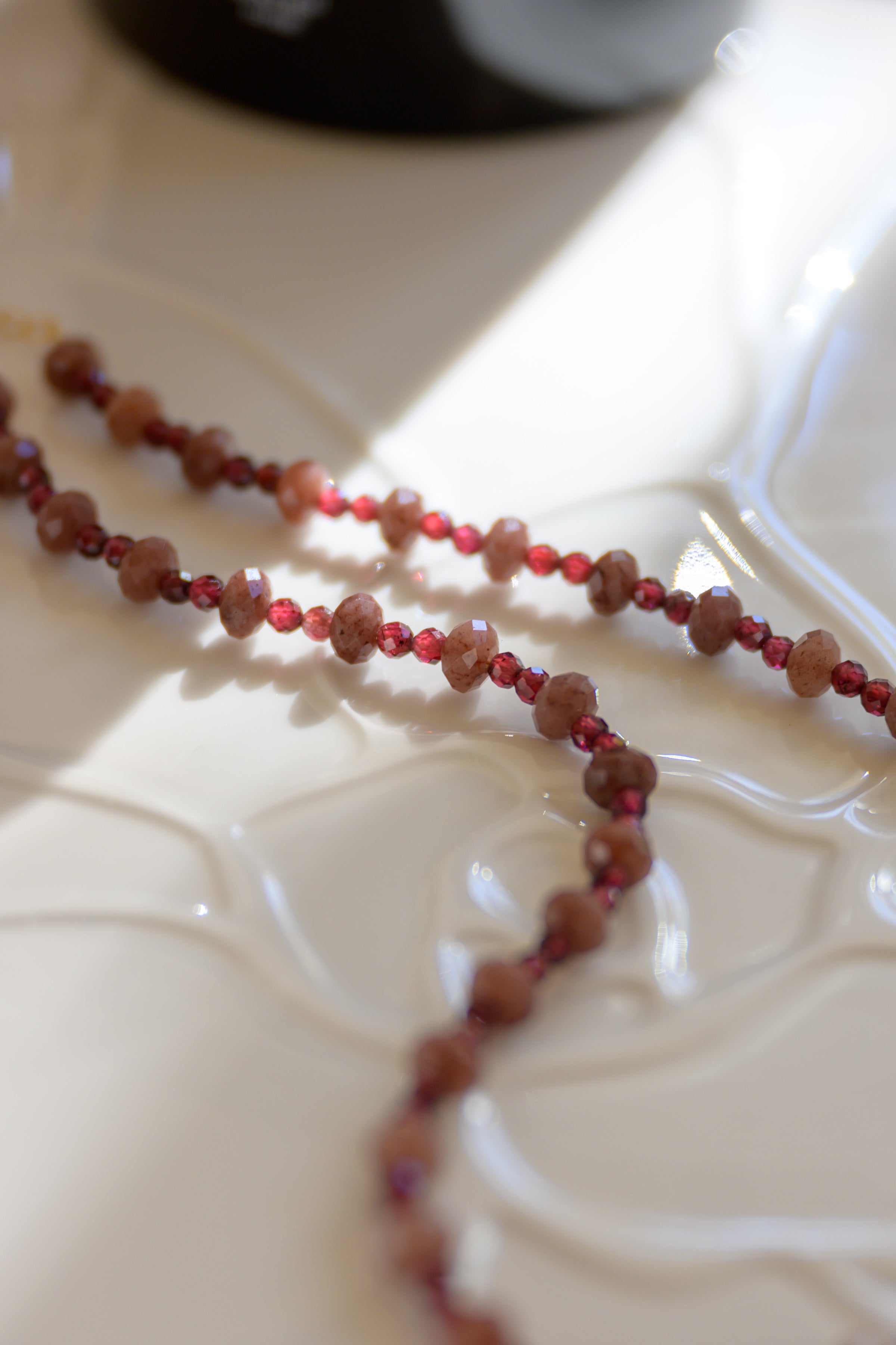 The Passion's Pulse necklace radiates with the vibrant energy of Ruby and Garnet, each gemstone carefully arranged in a star station style that exudes elegance and warmth. With sparkling Ruby beads interspersed among deep, rich Garnet stones, this necklace creates a rhythm of passion that flows with every movement. Ideal for those who embrace life’s fiery moments, this piece captures the essence of bold, enduring love and inner strength.