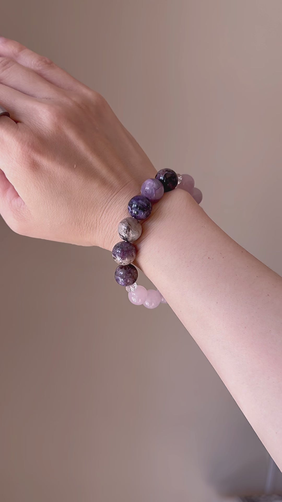 Prismatic Thought Bracelet | Charoite Madagascar Purple Rose Quartz(AA)
