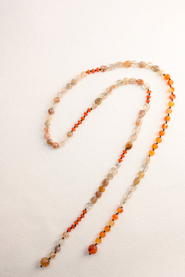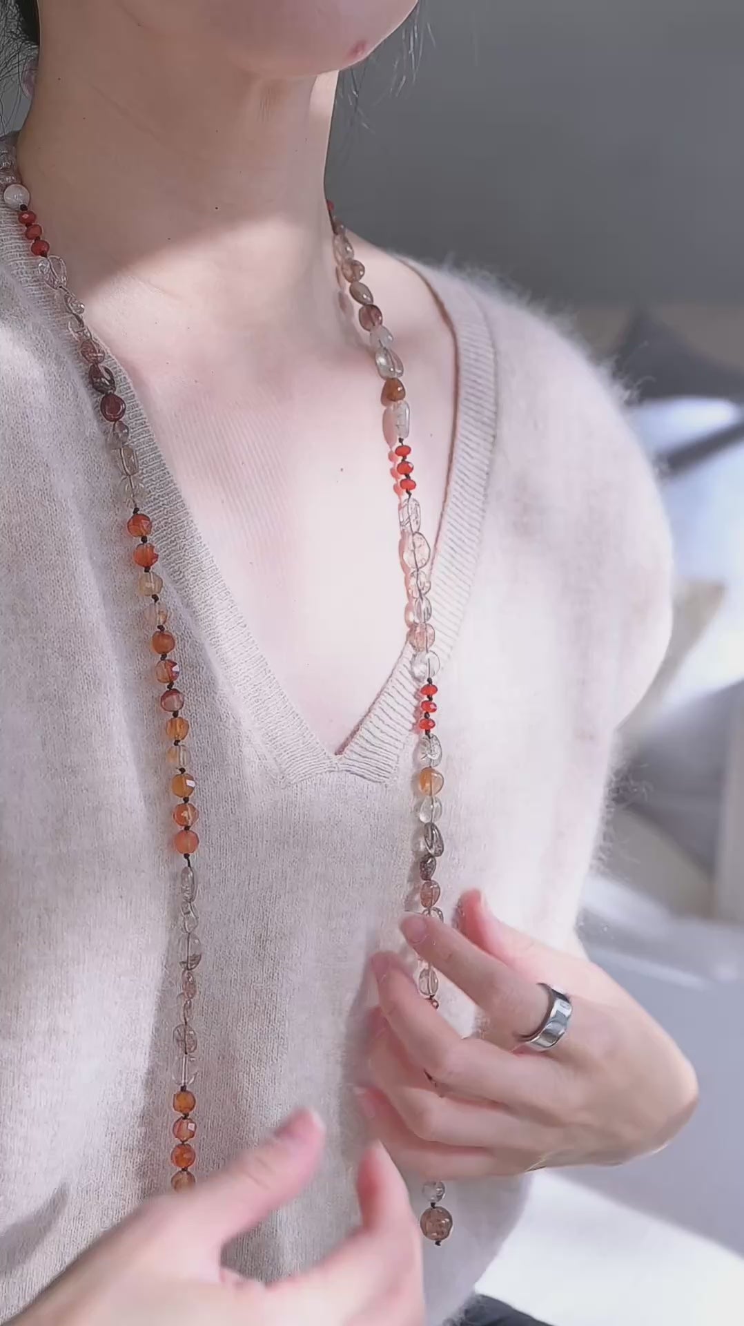 Layer it naturally into a two-line necklace for a refined, polished look. The shorter strand rests like a warm collar, while the longer one falls like a flowing red accent—balanced, feminine, and timeless.