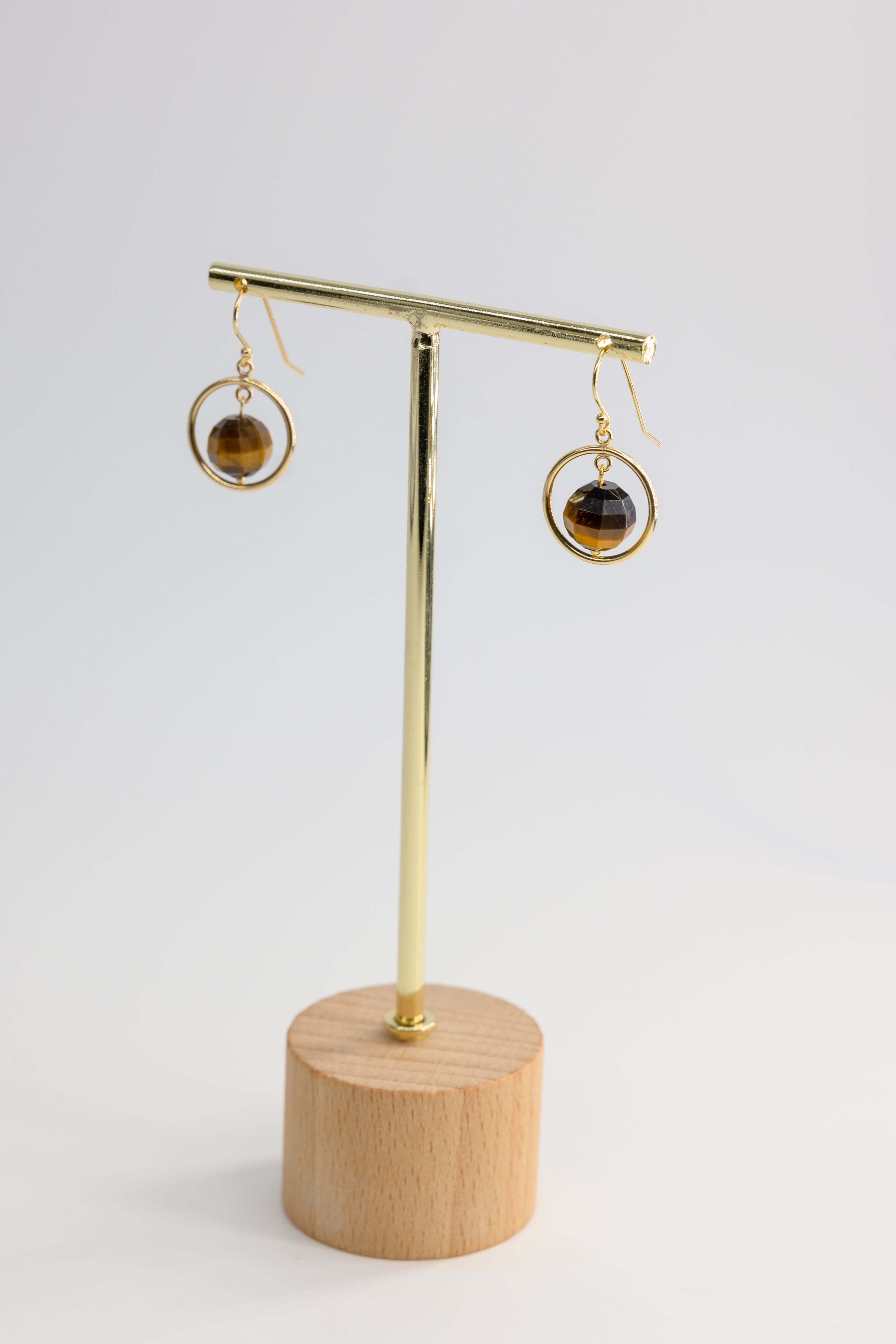These elegant golden hoop earrings feature a striking tiger eye round bead suspended in the center, evoking the warm gleam of sunlight dancing over a coral reef. The golden hoops enhance the fluidity and richness of the design, while the tiger eye bead adds a grounding, earthy touch. Perfect for those who appreciate the radiant beauty of nature's underwater treasures.