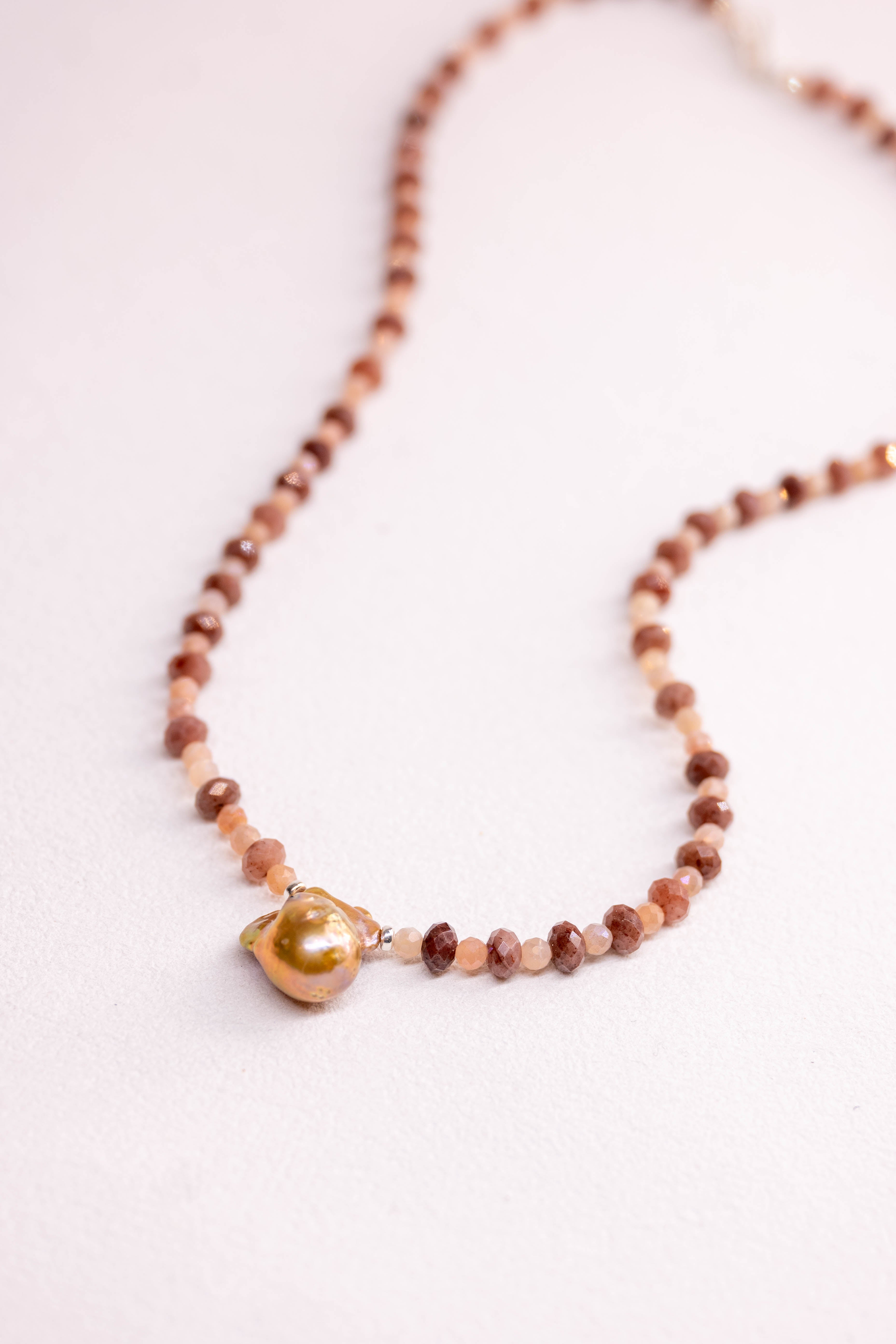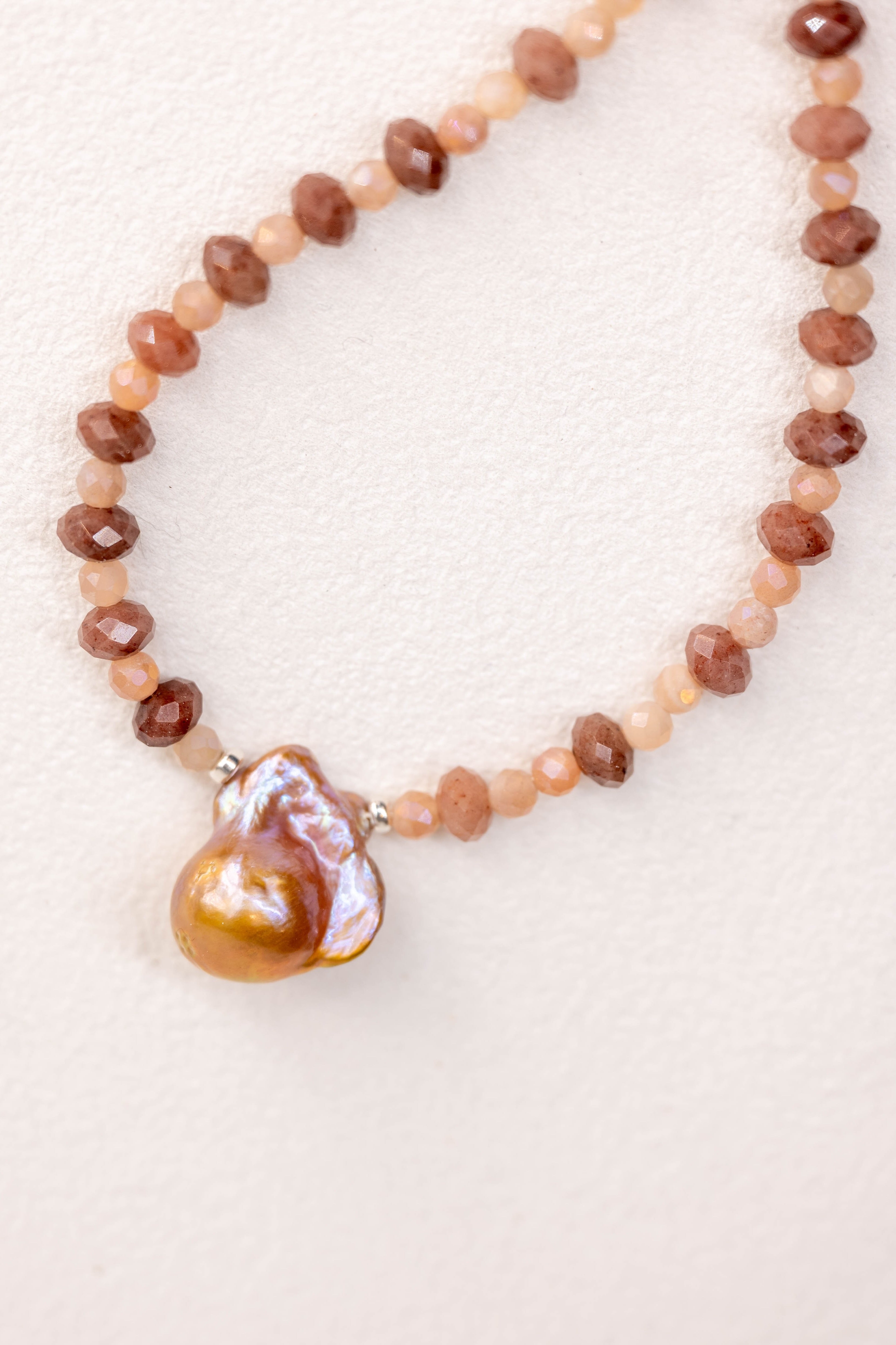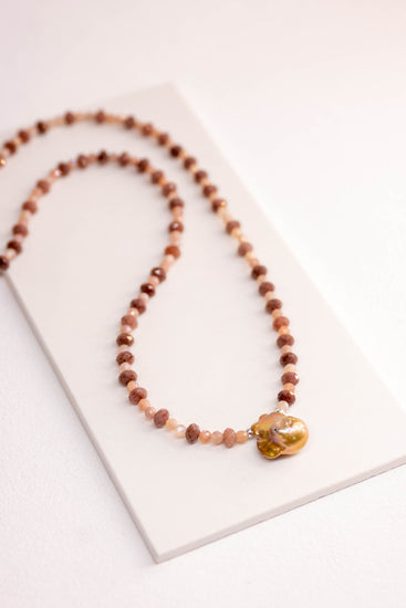 Rosy Moon Moment Necklace | Ruby Moonstone Baroque Pearl