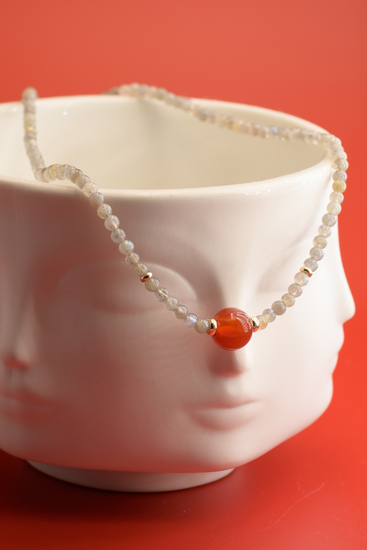 Vintage Scarlet Sensation Carnelian Labradorite Necklace
