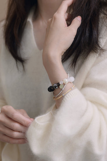 Serenity Balance Bracelet | Black Onyx White Jade Abalone Mosaic