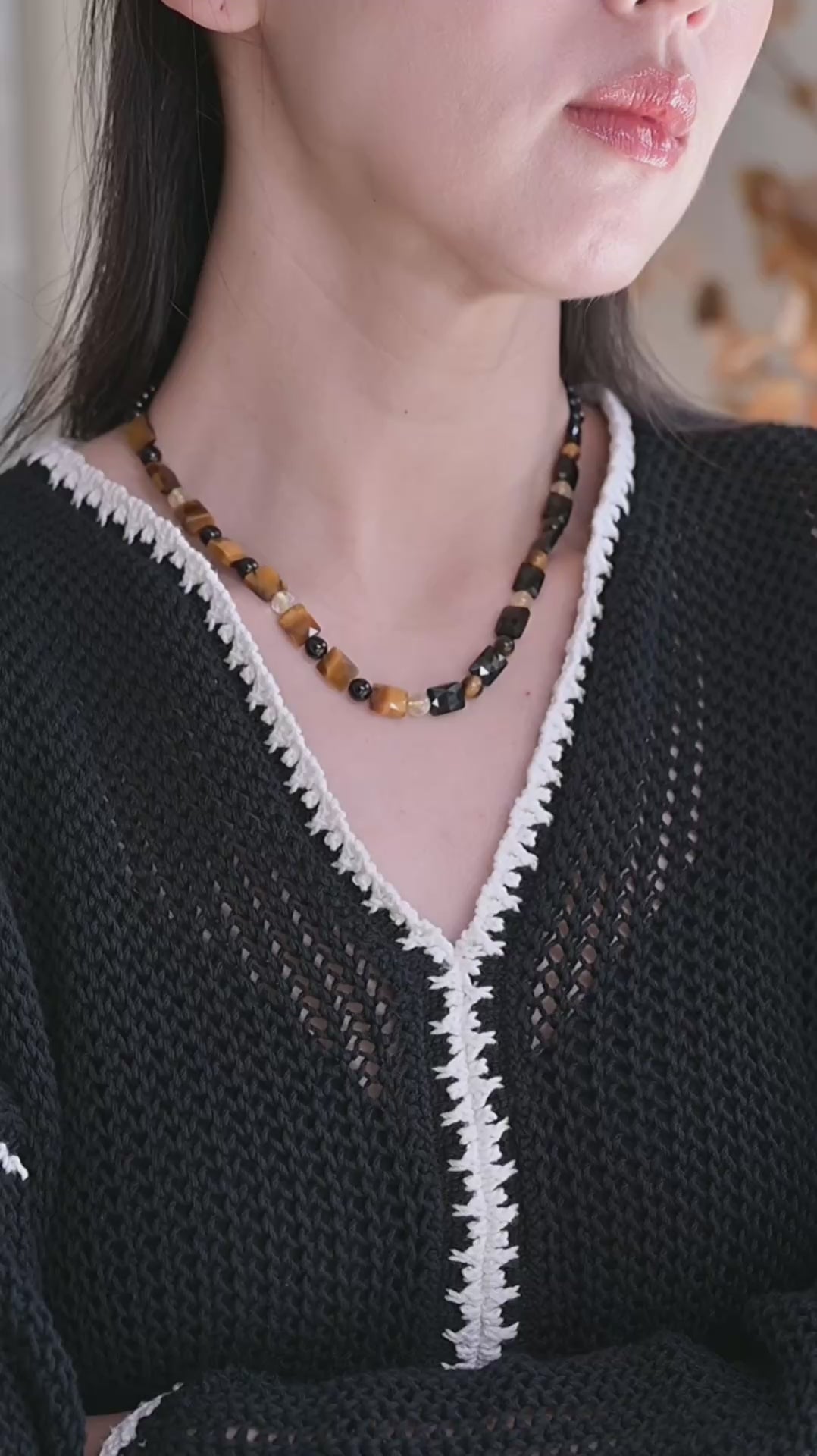Solar Midnight Necklace | Black Obsidian Tiger Eye Black Onyx Citrine