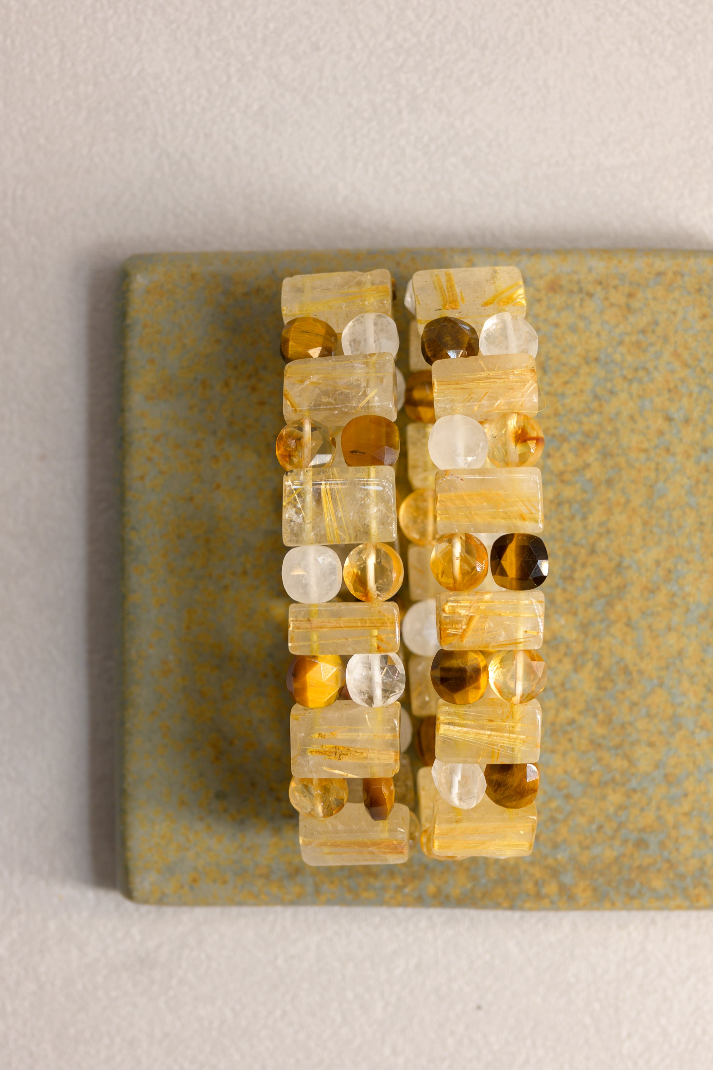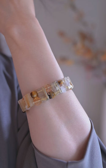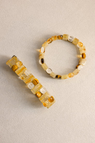 Golden Rutilated Quartz Rectangles, streaked with fine golden threads, blaze with the energy of the sun, symbolizing vitality, clarity, and abundance.