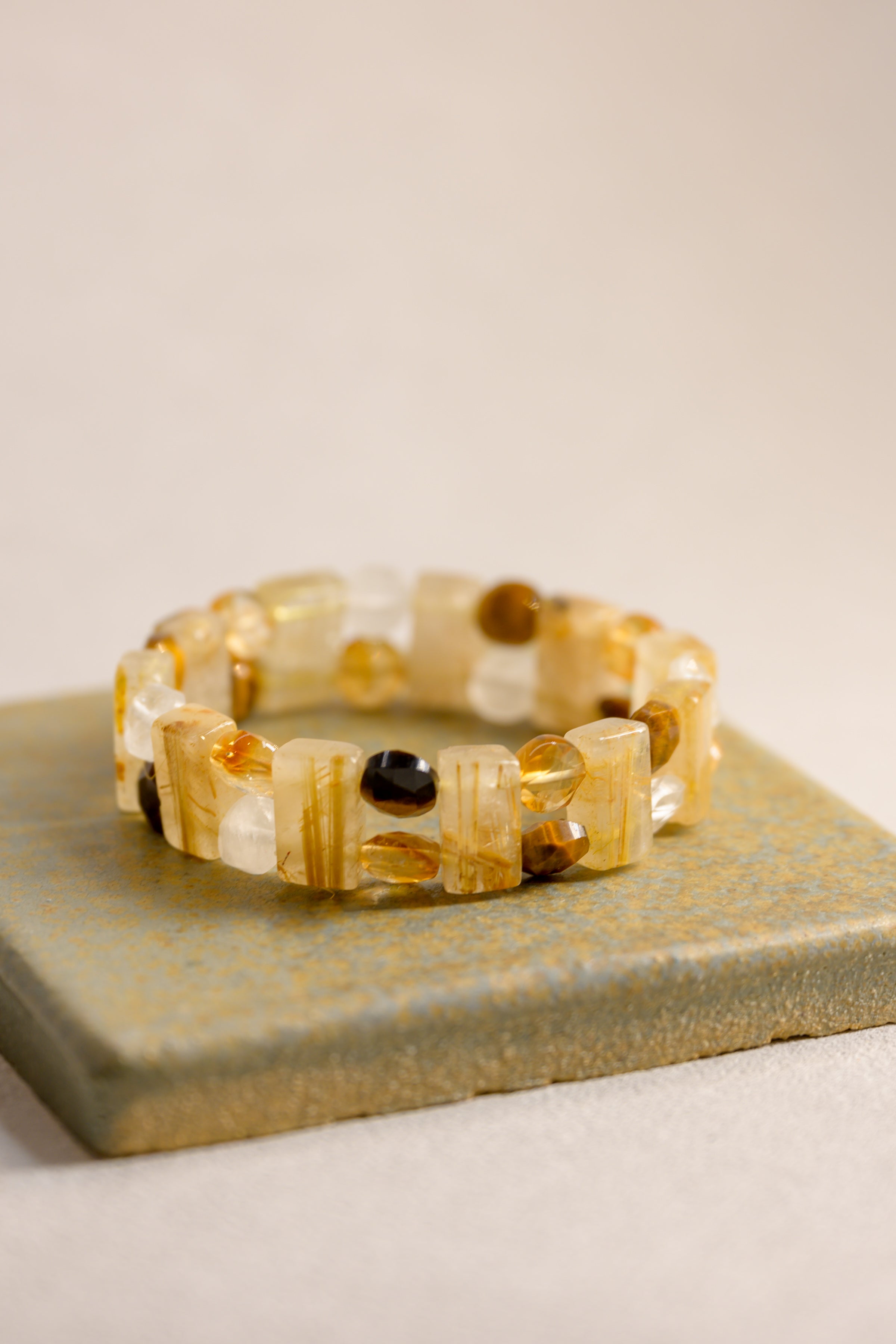 Together, these gemstones form a crown of celestial fire — sunlight, starlight, and crystal clarity united in harmony. Worn as a halo around the wrist, the Sunfire Crown Bracelet is more than adornment; it is a talisman of light, strength, and radiant power.