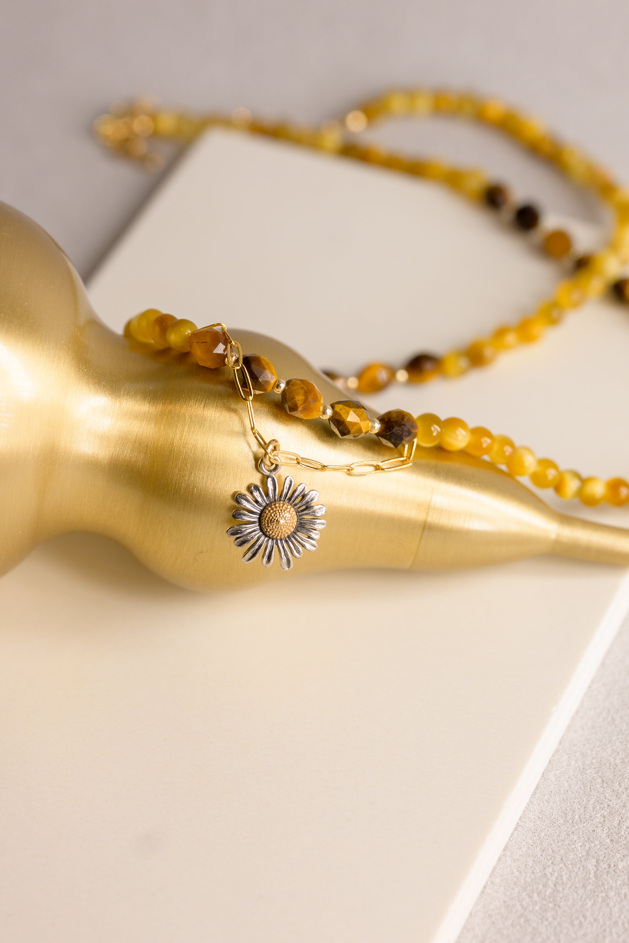Sunlit Daisy Necklace | Blonde Tiger's Eye Tiger Eye (A)