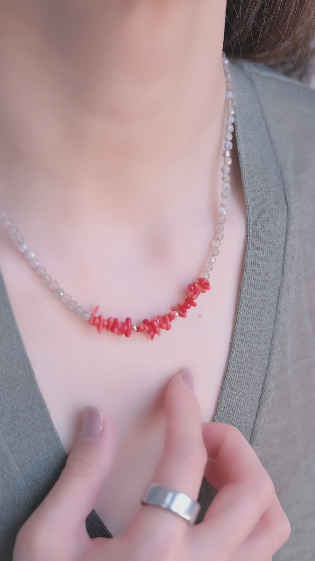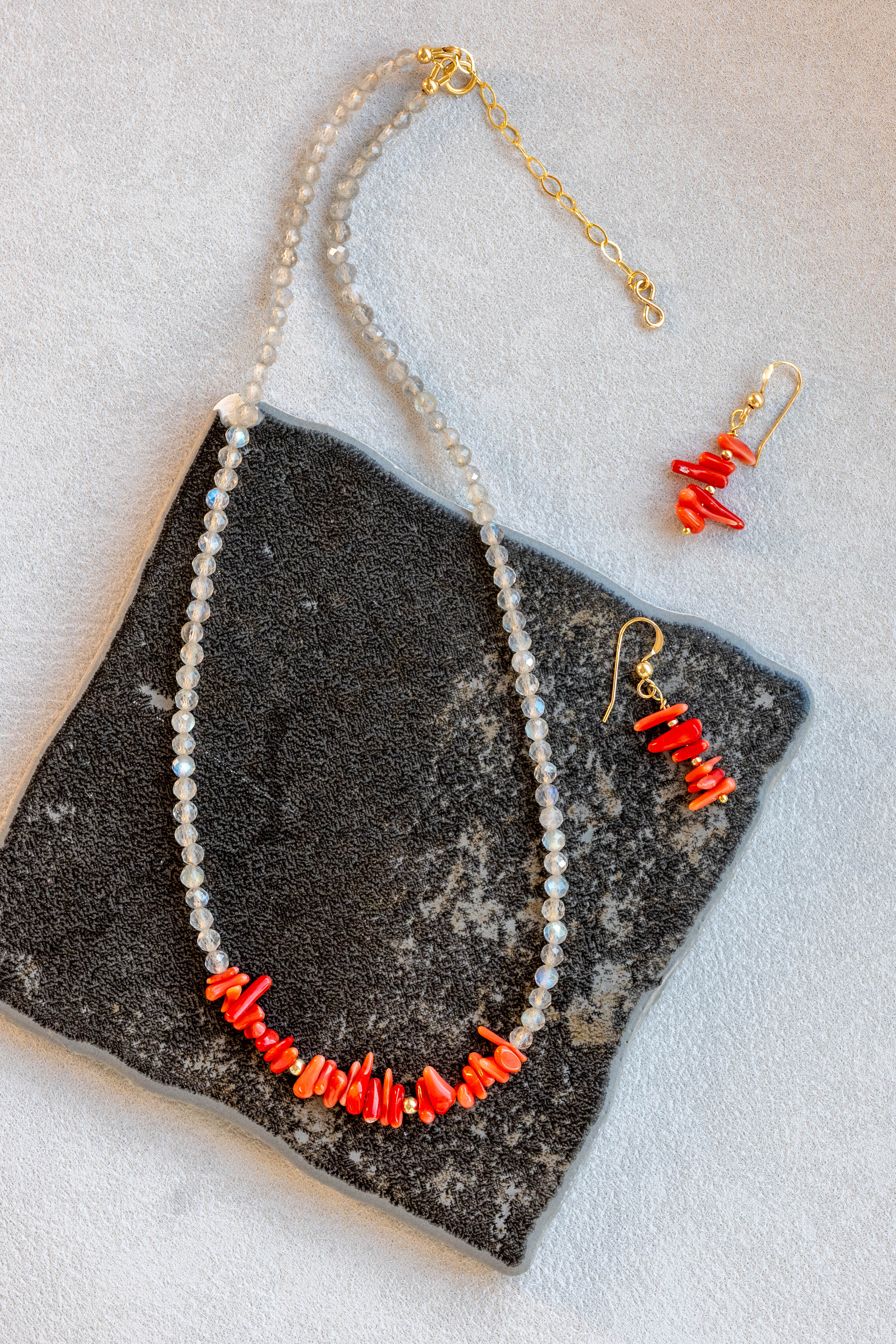 The Sicilian Pulse Necklace | Italian Red Coral (AA) Labradorite(AA)