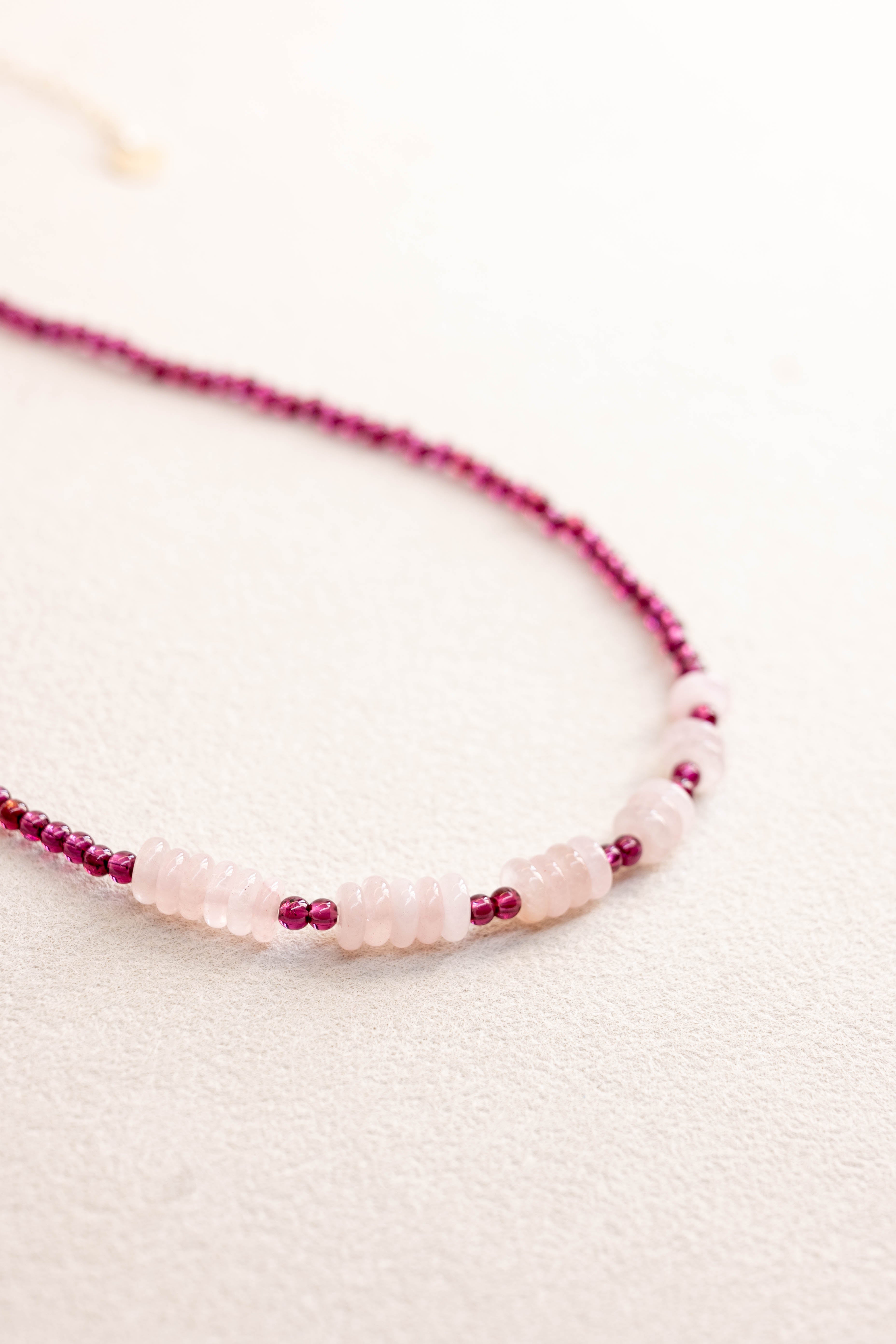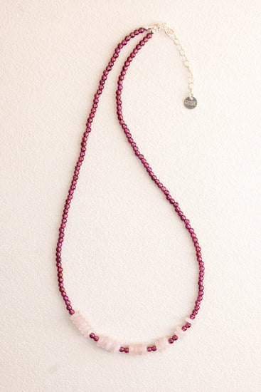 The Velvet Pulse Necklace | Rhodolite Garnet Madagascar Rose Quartz