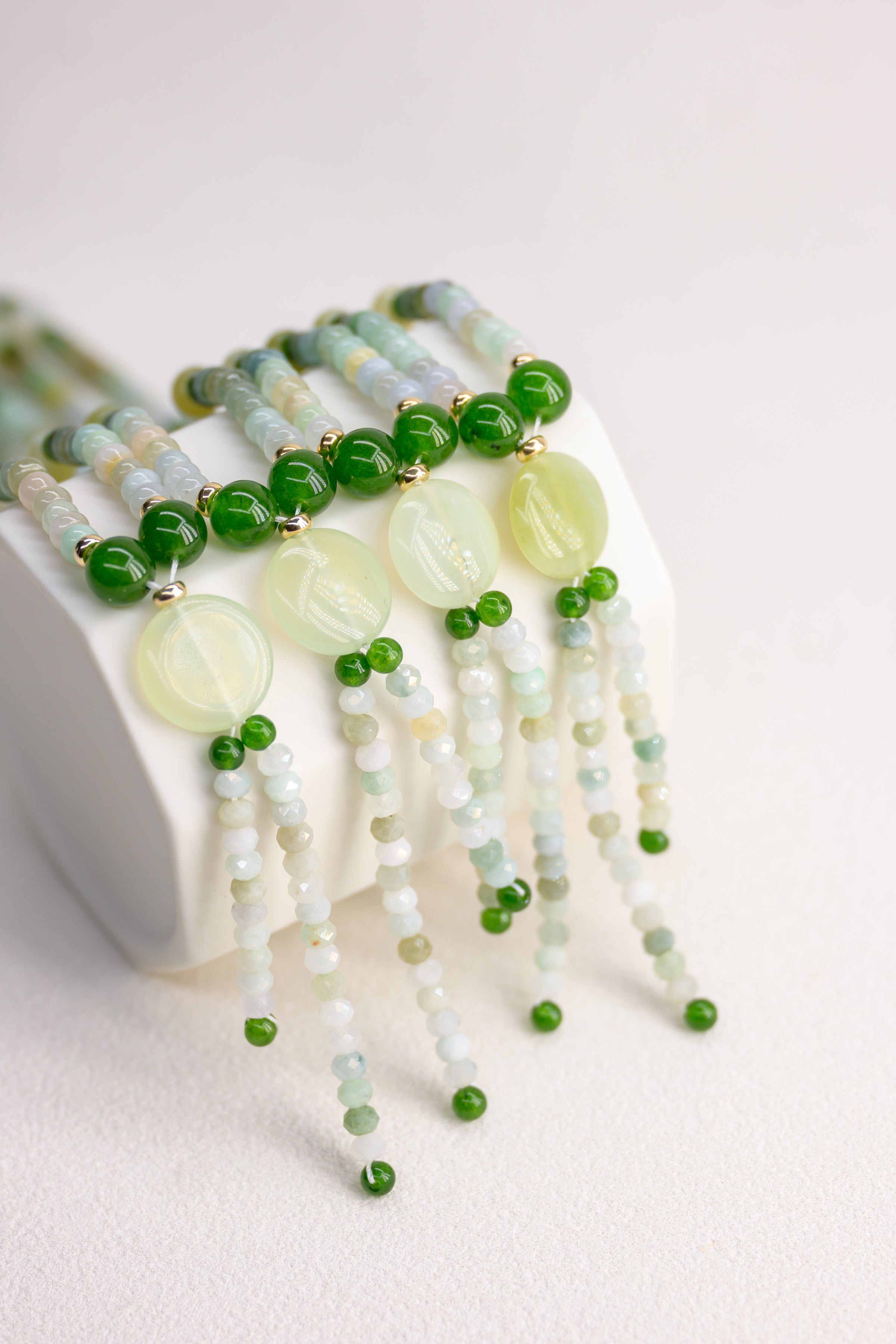The Trinity of Green Necklace is a celebration of jade’s timeless beauty, uniting three origins into one celestial harmony.