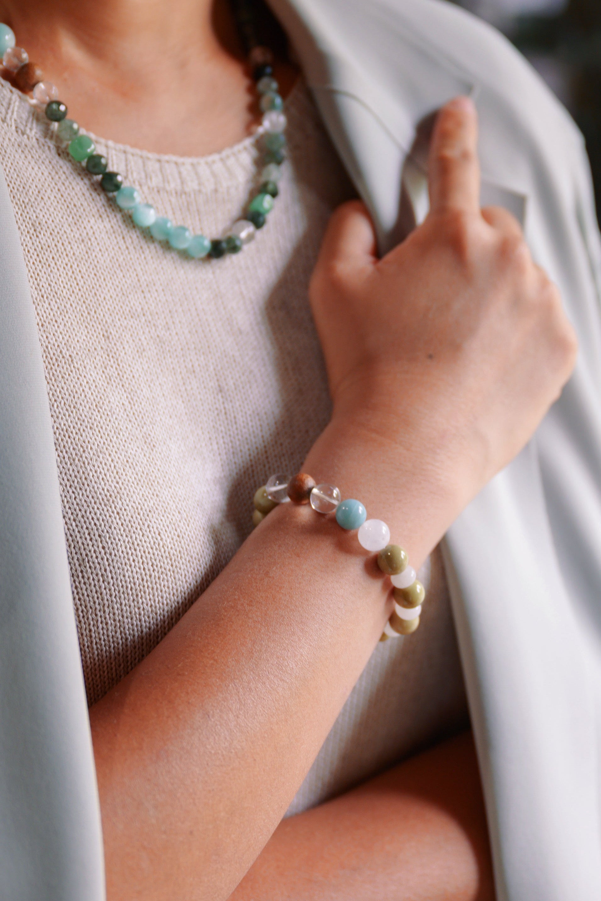 Visionary Spark Bracelet | Amazonite(AA) Green Imperial Jasper Kakawate Wood White Jade