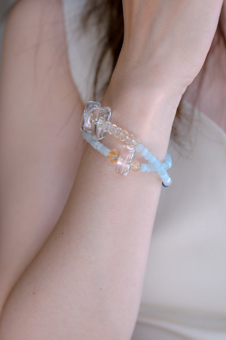 Visionary Spark Double-lined Bracelet | Aquamarine Kyanite(AA) Citrine Rock Crystal Quartz