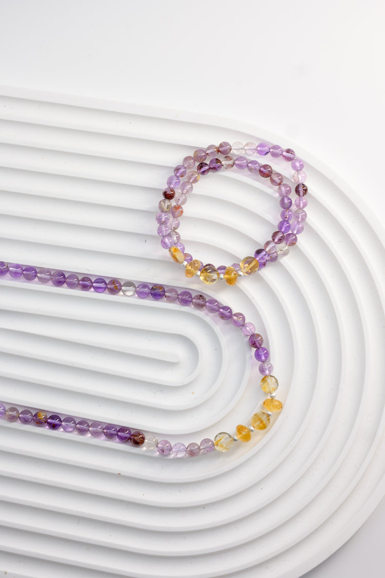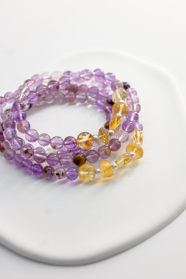 Visionary Spark Double-lined Bracelet | Purple Phantom Quartz (Auralite-23) Citrine (AA)