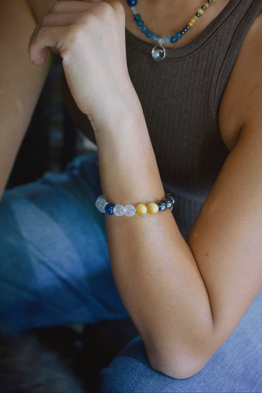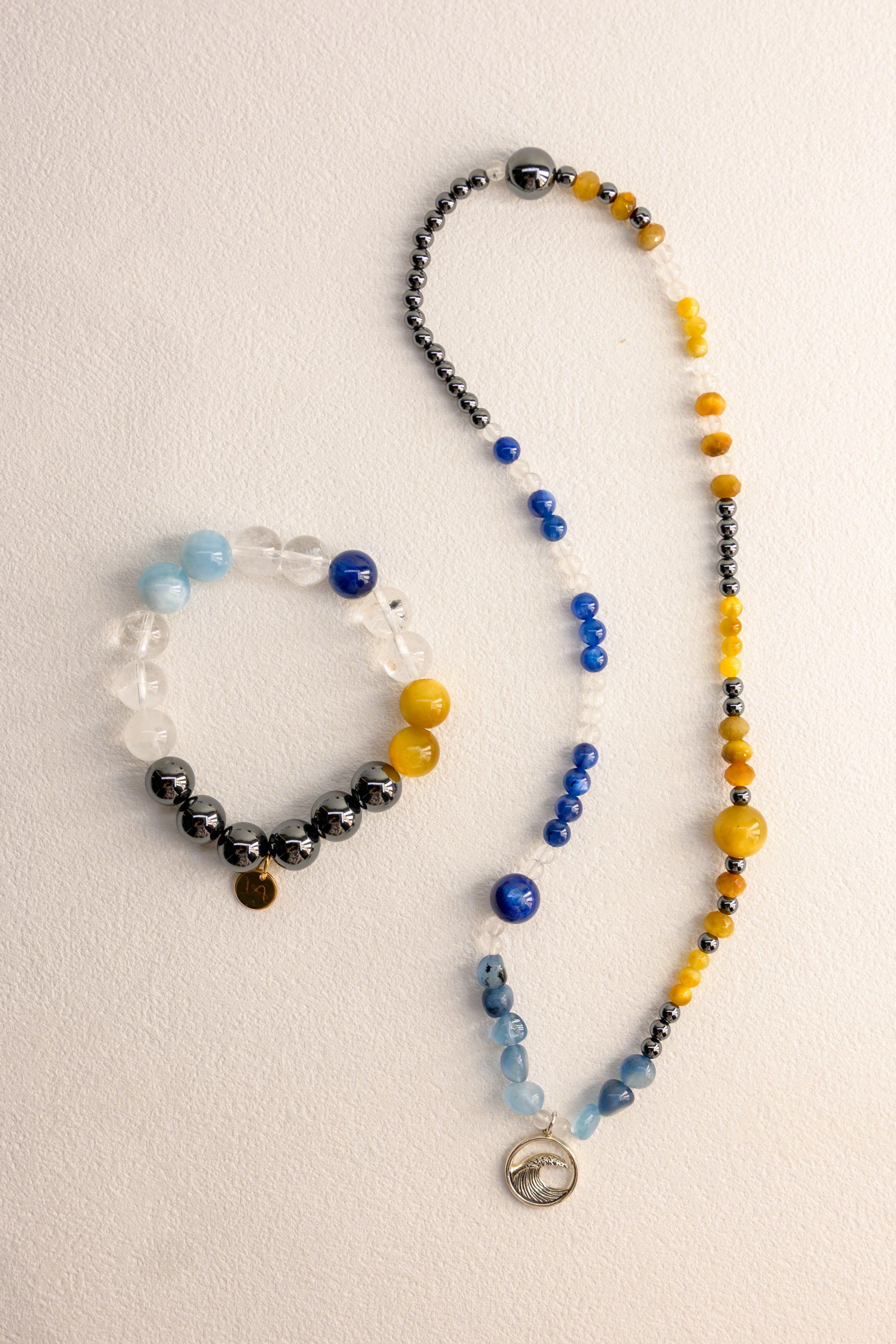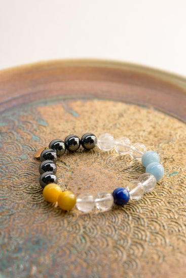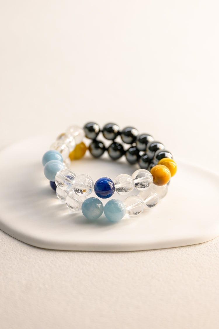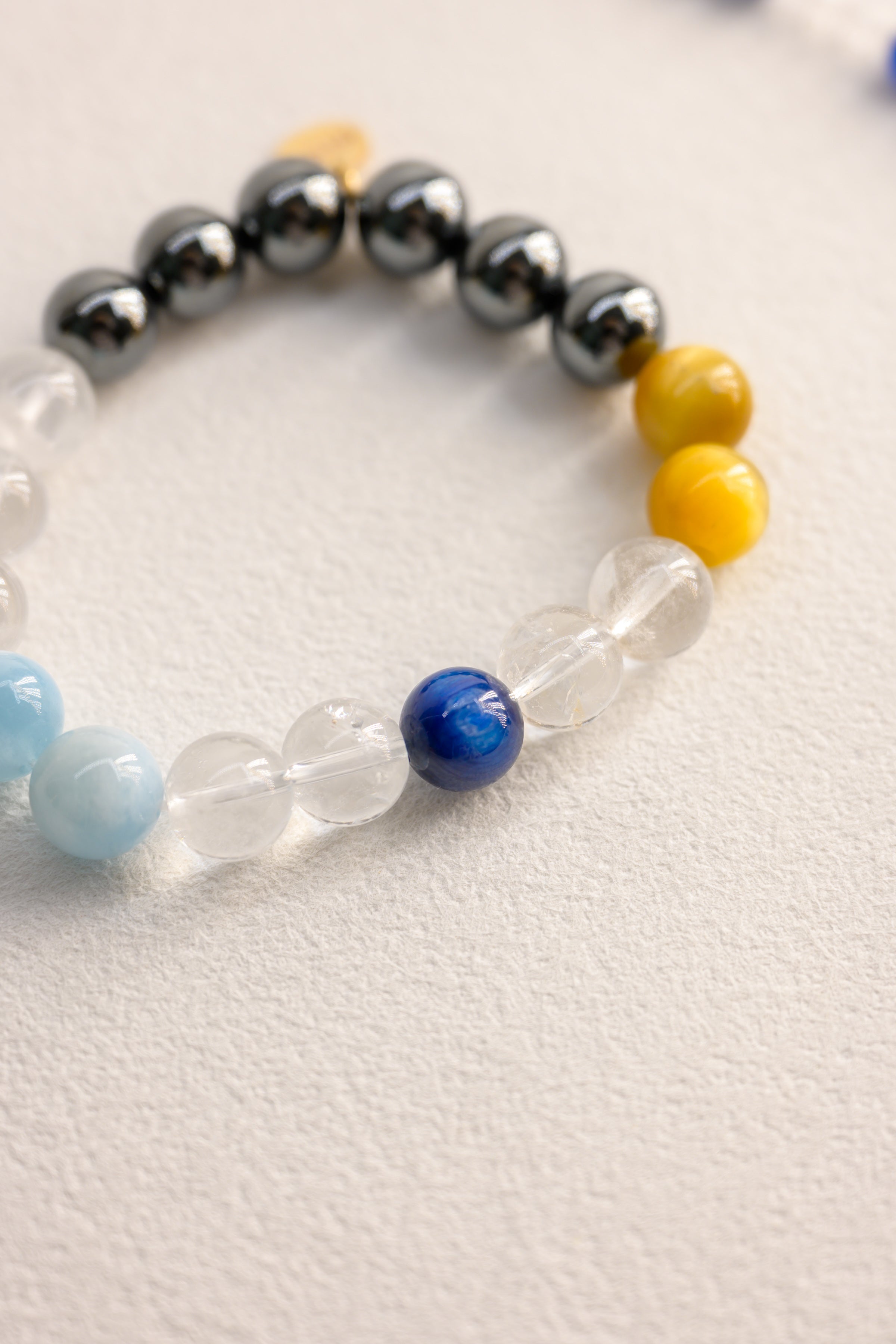 Wave of Light Bracelet | Aquamarine(A) Kyanite(AAA) Hematite Blonde Tiger’s Eye Rock Crystal